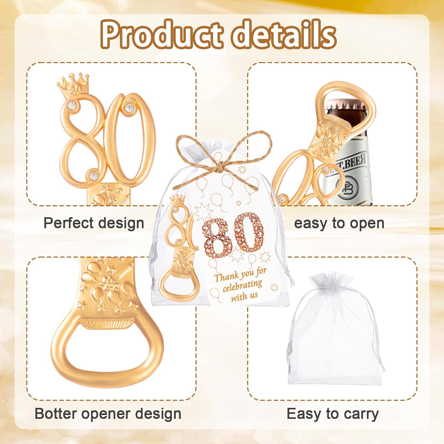 • Generous Set: Our 80th birthday bottle openers are large capacity kits that provide enough gifts for all your guests. You can use the bottle openers to decorate your party and as a keepsake without compromising on quality and style, bottle openers for 80th birthday easily accommodate large parties