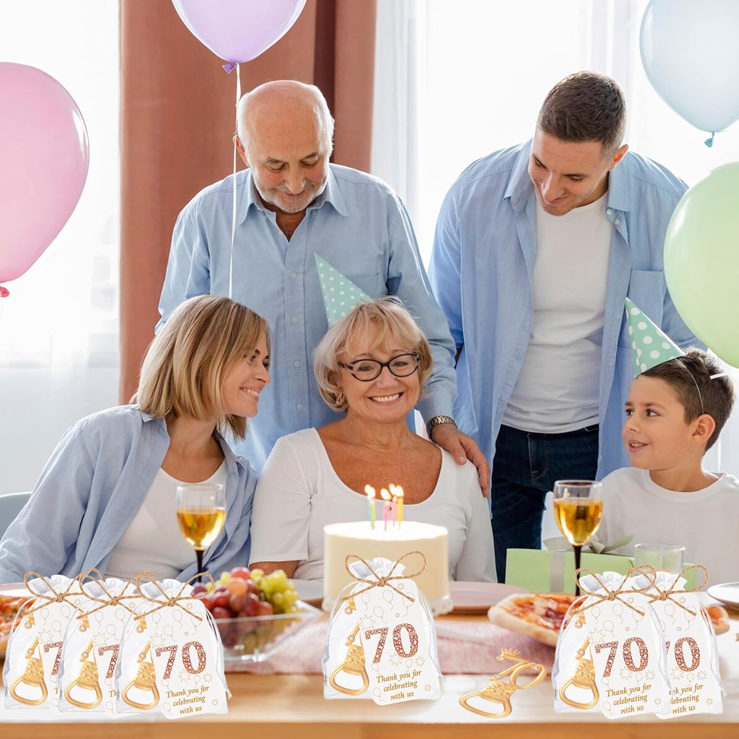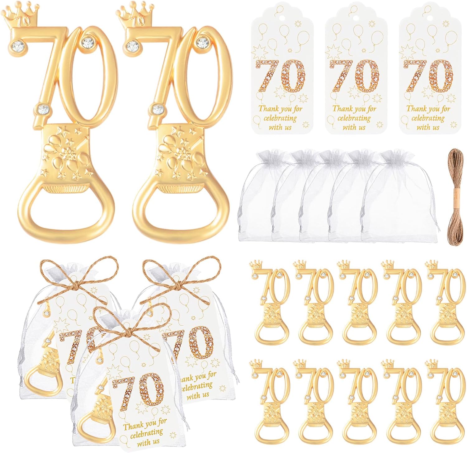• Gold and White Theme: Our 70th birthday bottle opener has 50pcs. The combination of gold and white makes it more stylish and grand, perfect for birthday or wedding anniversary decorations with white and gold theme, it is a perfect choice for your party decorations