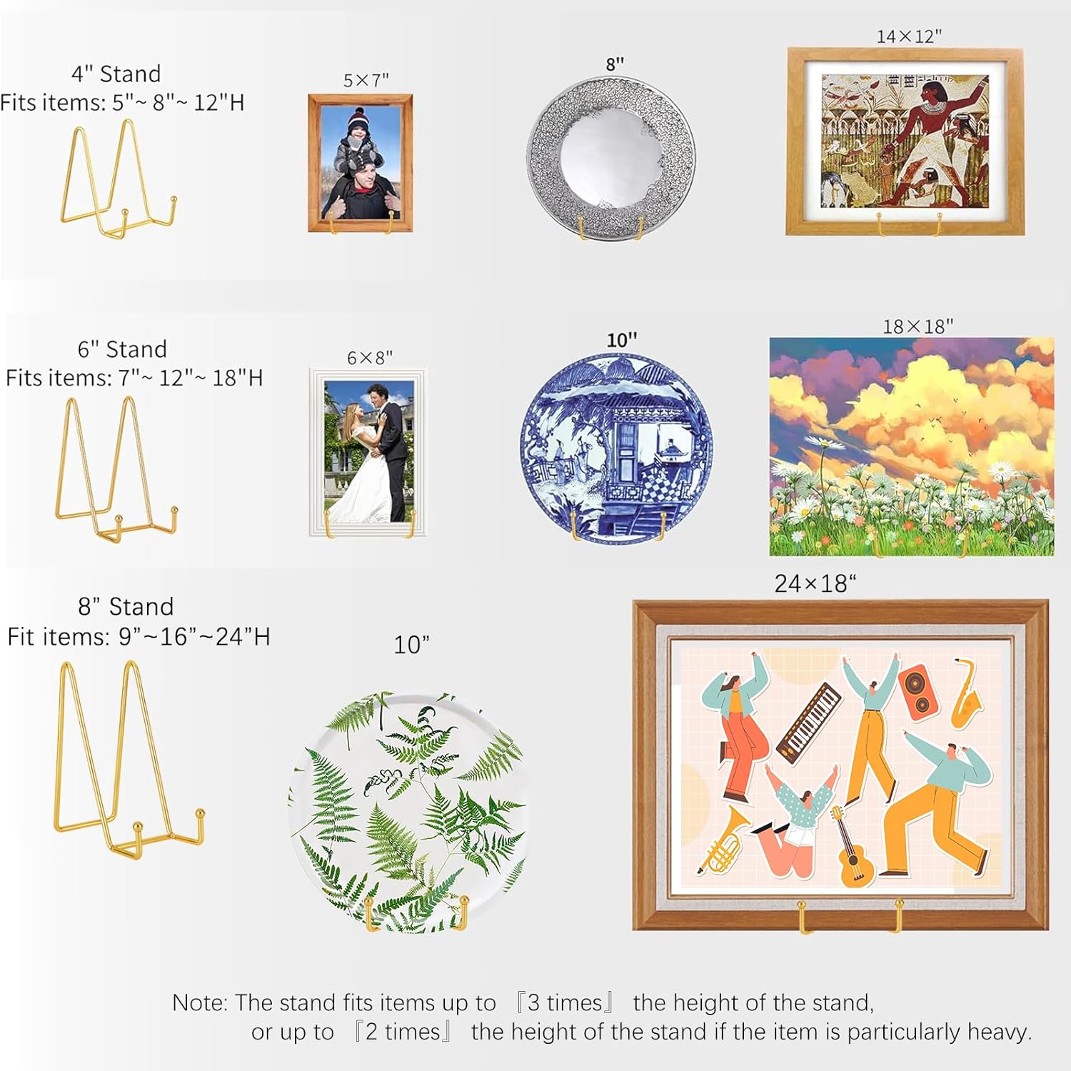 • 5 Pack Stands: The 5 pack plate holder set allows you to meet different needs with one purchase, and it is more cost-effective. You can use the display stand to place your photos, artwork, open books, mobile phones, tablets…and so on