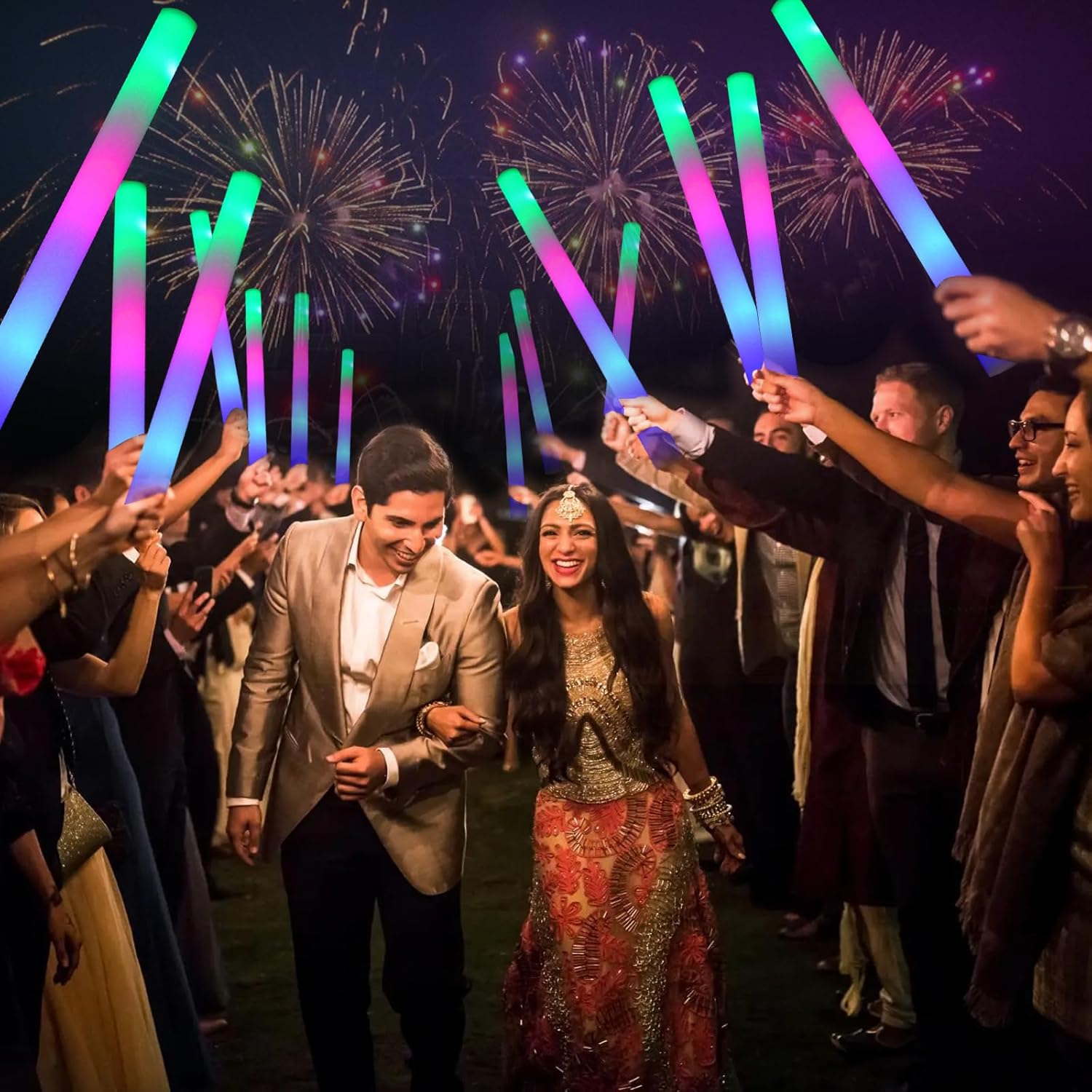 • Long Lasting Multi-color Foam Glow Sticks - Each LED foam stick emits 3 colors of light and comes with 3 batteries, which can last for more than 8 hours. Bring your party a more fun glowing experience.