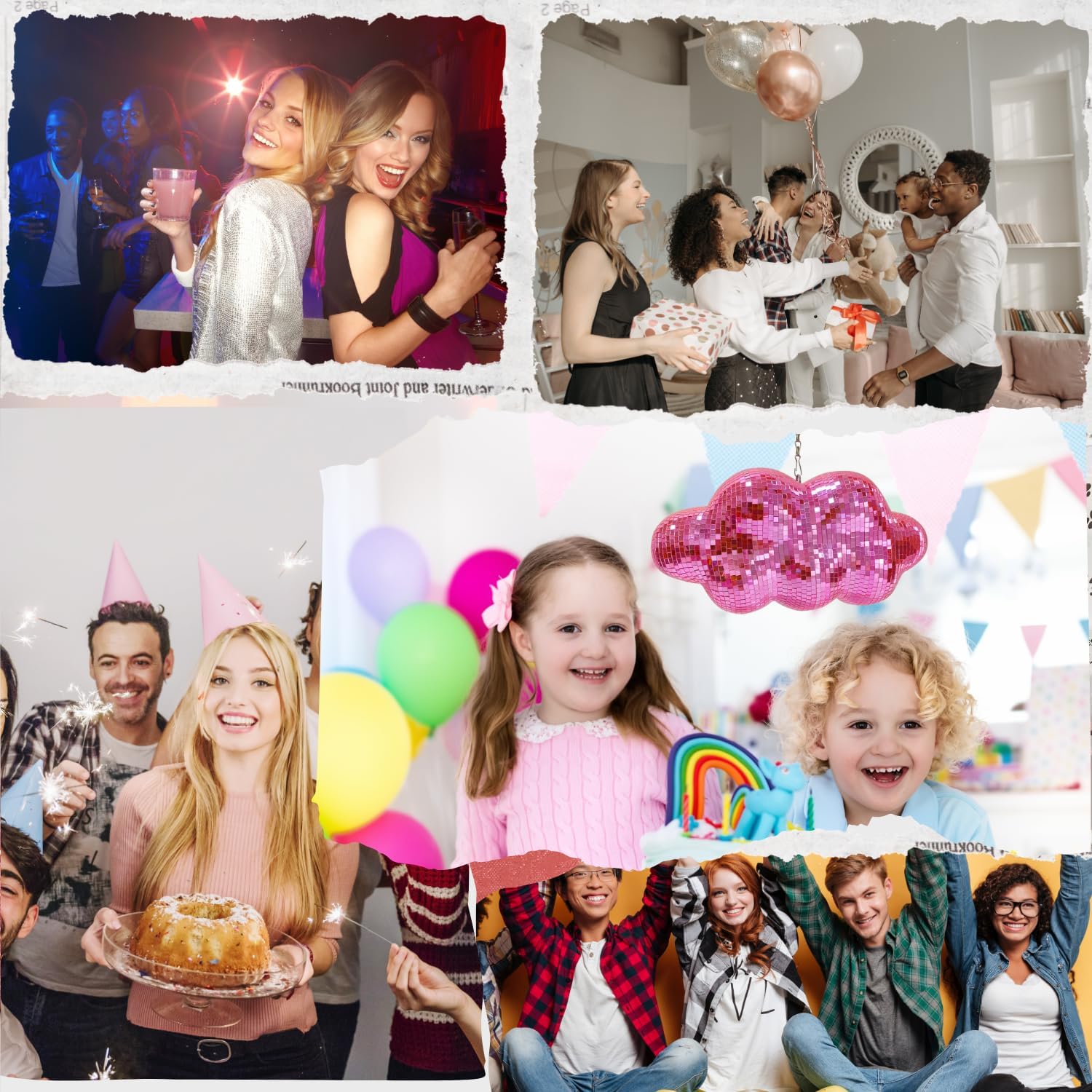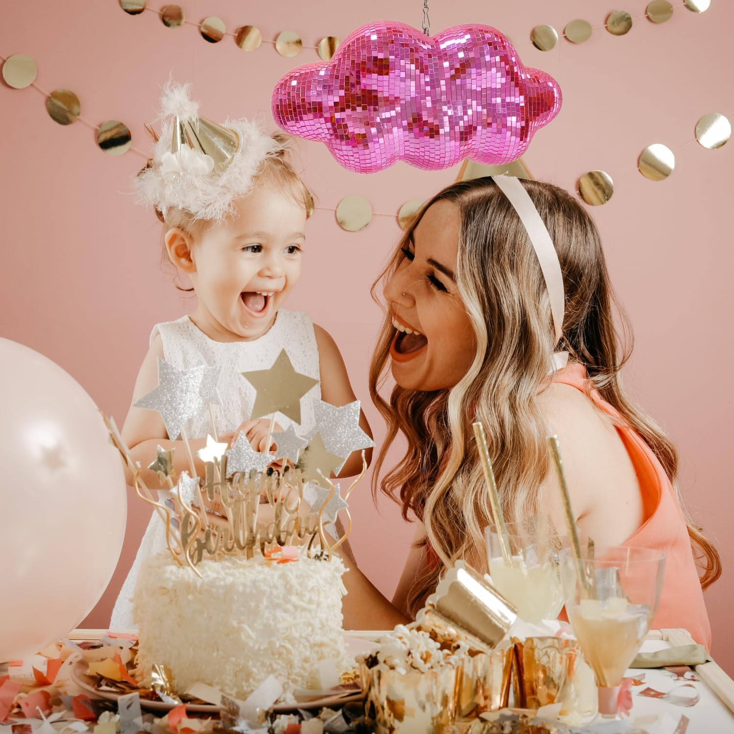Pink Disco Ball Cloud Shaped, Hanging Disco Decor for Party,Room,Home, Retro Reflective Mirror Ball with Chain, Disco Ornaments, Design Patent