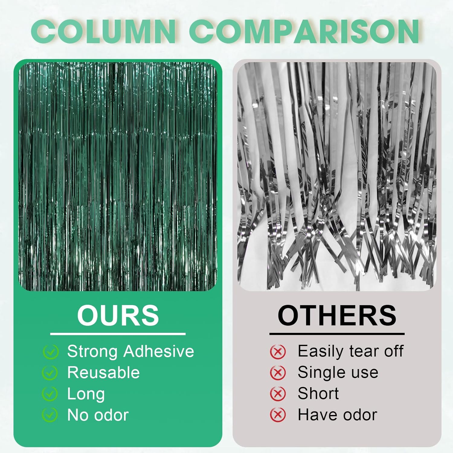 • Package Included: 3 packs of green foil fringe curtains, the size of the foil curtain is 3.3*8.2ft. It's long enough to fit any occasion