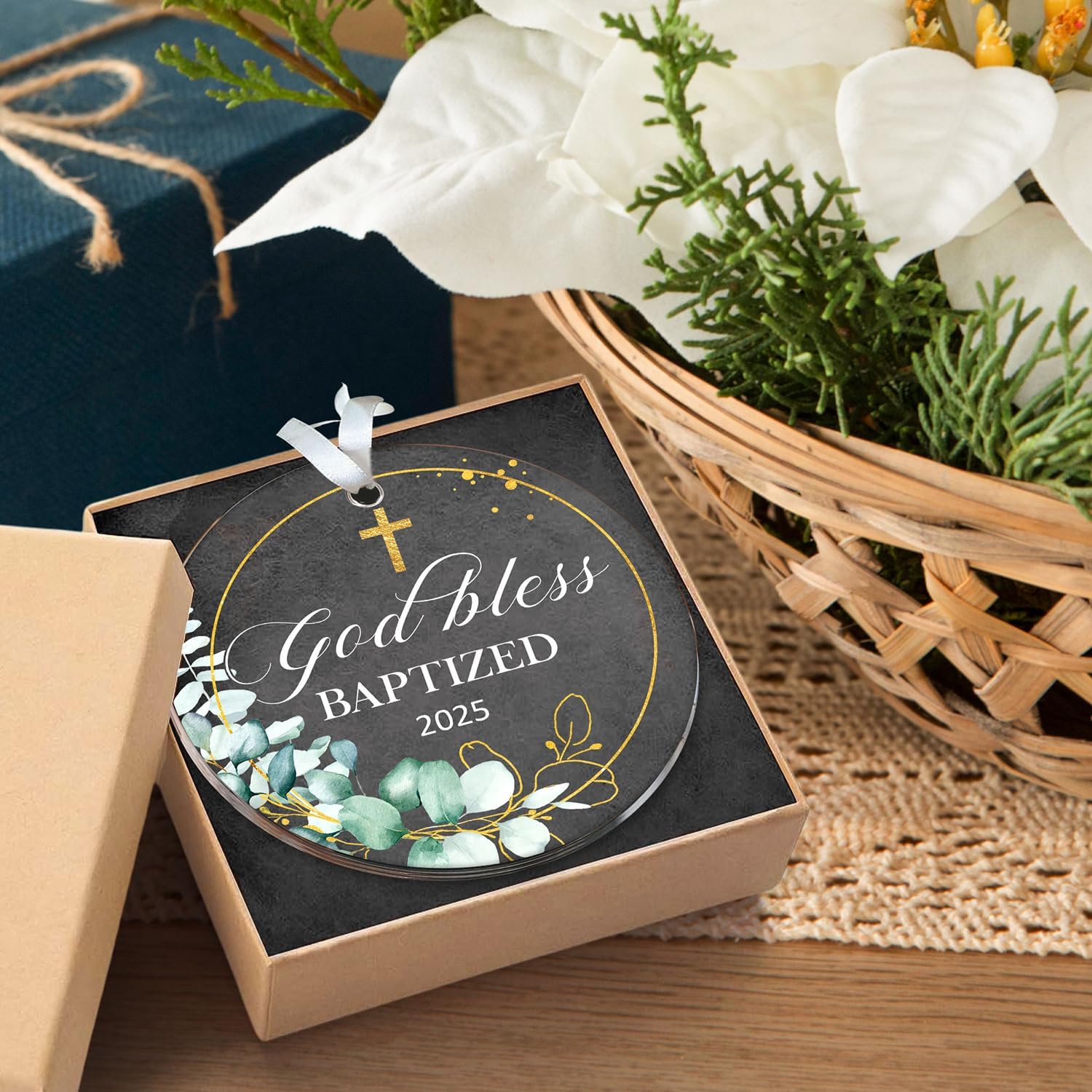 • CELEBRATE A SACRED MOMENT – Commemorate a meaningful baptism or christening with this elegant “God Bless Baptized 2025” ornament, perfect for Easter and spiritual occasions.
