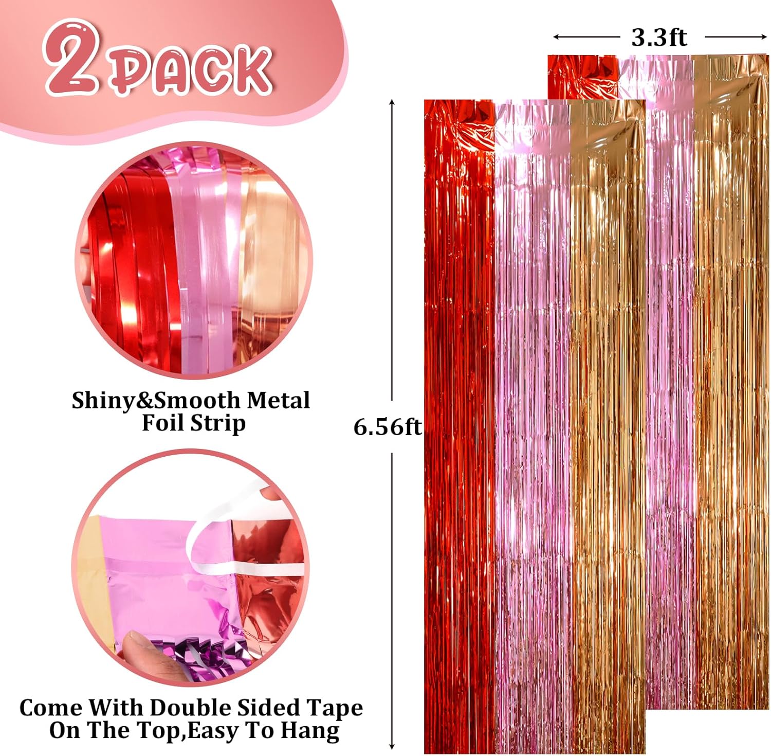 2 Pack Valentine Foil Fringe Backdrop Curtains, Tinsel Streamers Party Decorations, Fringe Backdrop, Door Shimmer for Valentine or Birthday Party
