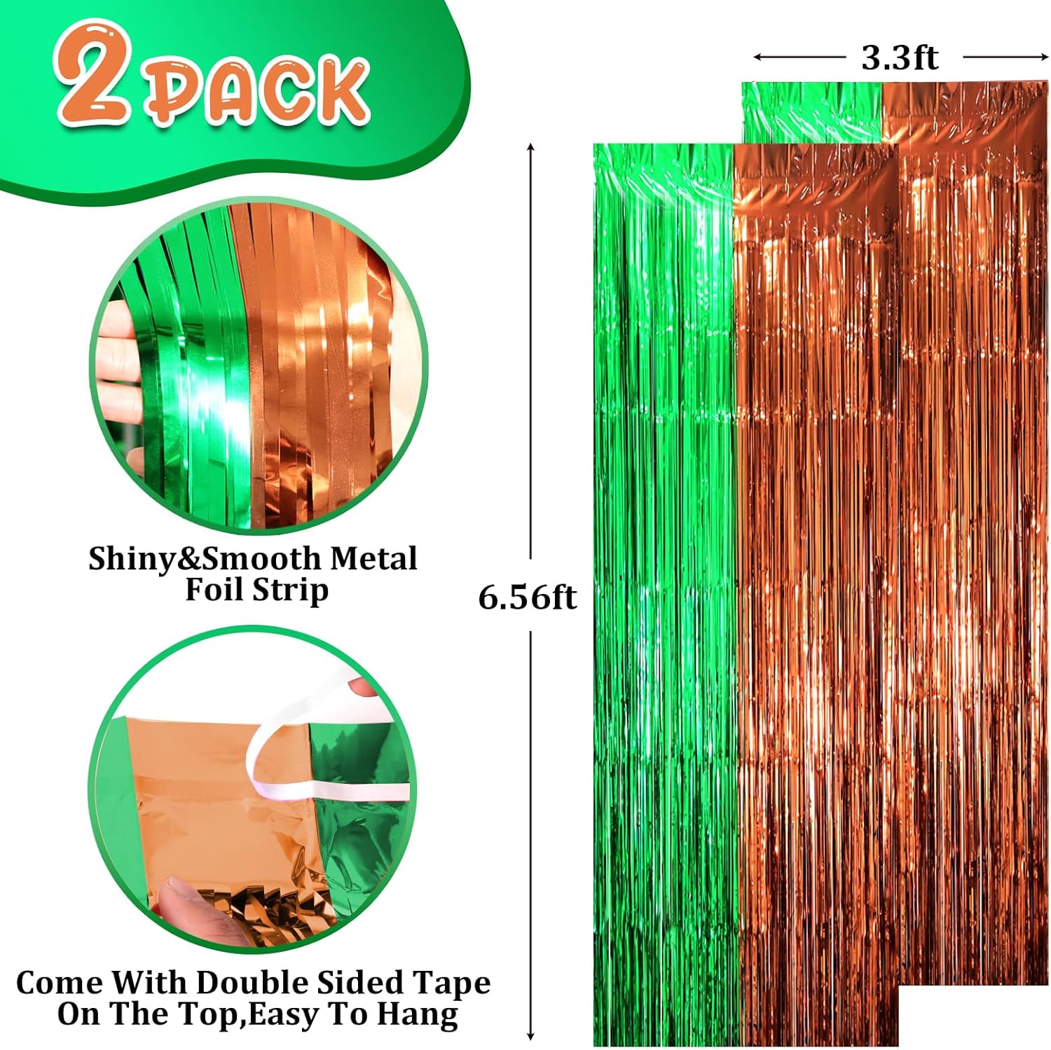 • Stunning Decorative Set: You'll receive 2 pcs green and brown foil fringe backdrop curtains, each measuring 3.28 ft (wide)Γ—6.56 ft (drop). Enough length foil fringe curtains backdrops are perfect for the door or wall to create an impressive decoration