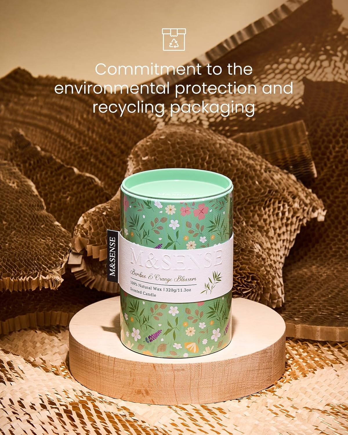 M&SENSE Bamboo Orange Blossom Scented Candle, Medium Jar Candle 11.3oz Natural Soy Wax for Home Scented, Floral Candles Gift for Spring Holiday, Up to 70 Hours Burning Long-Lasting Fragrance
