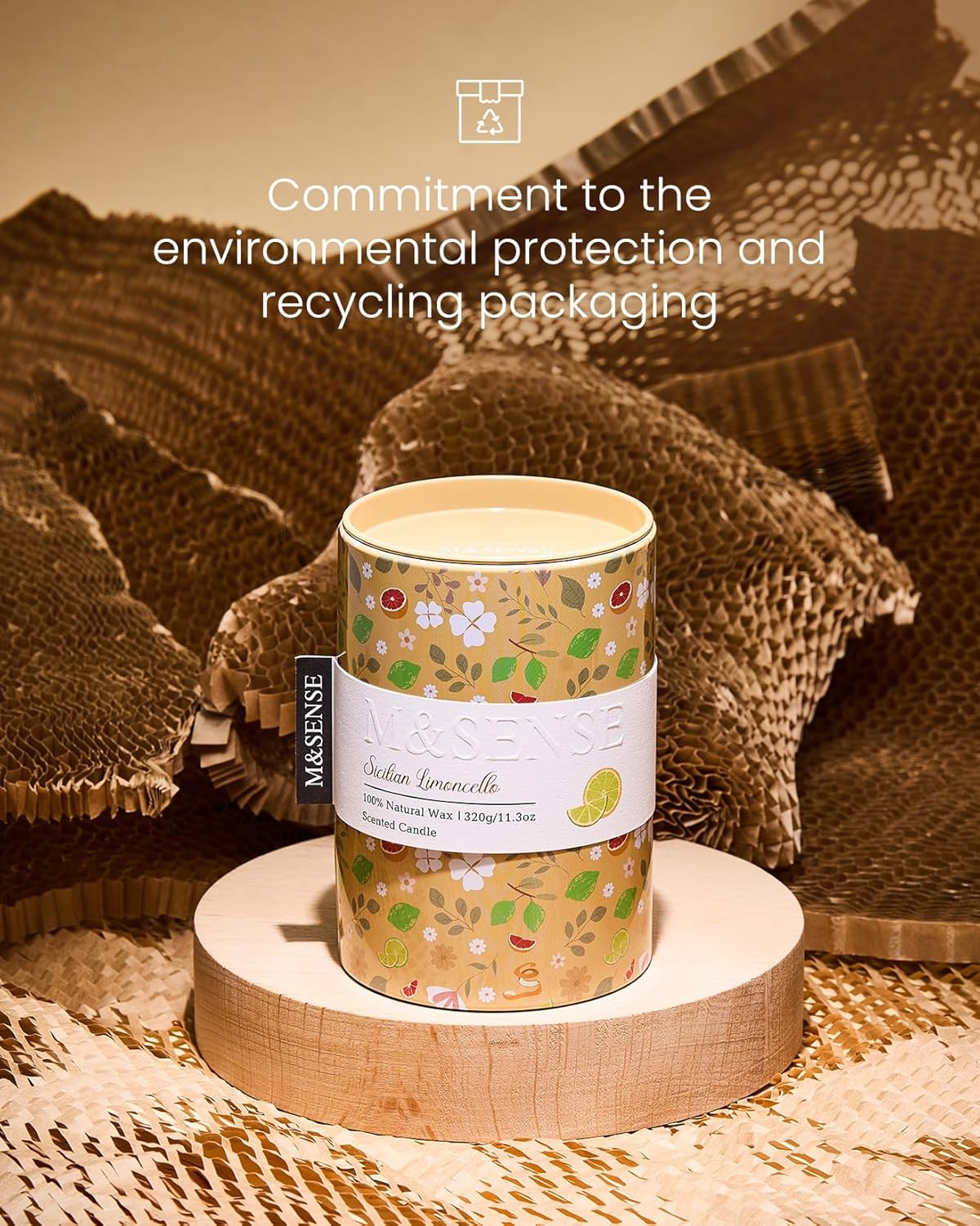 M&SENSE Sicilian Limoncello Scented Candle, Lemon Candle 11.3oz,Summer Soy Wax for Home Scented, Floral Candles Gift for Spring Holiday, Up to 70 Hours Burning Long-Lasting Fragrance