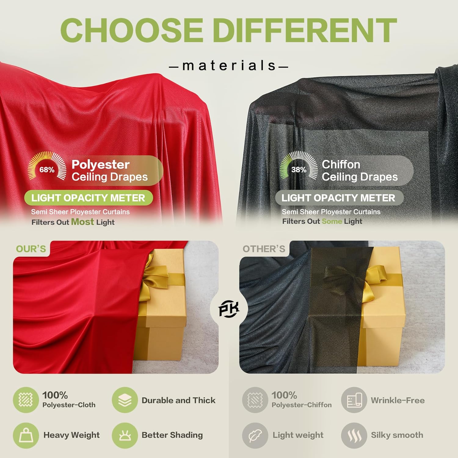 • Extra-Long Brilliance: This draping fabric, with its expansive 40ft Length, allows for grand and luxurious draping panels, making it an ideal choice for creating stunning backdrops, ceiling decor and tent draping that captivate attention.