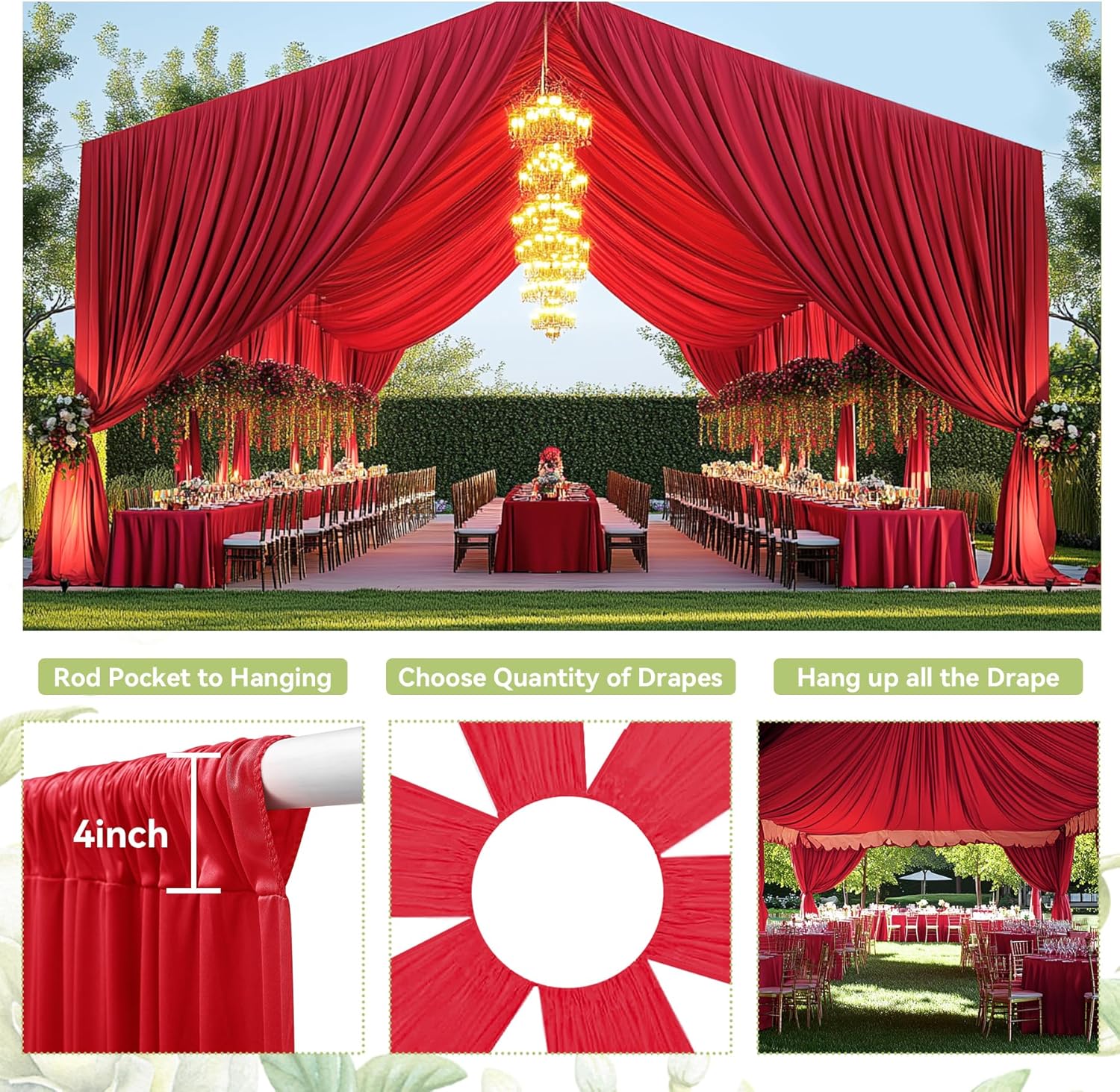 PartyVillage 10ftx40ft Red Ceiling Curtain for Wedding Parties – 2 Panels Wrinkle-Free 40 FT Long Tent Draping Curtains for Wedding, Birthday & Theme Parties, 40ft Height with Rod Pocket