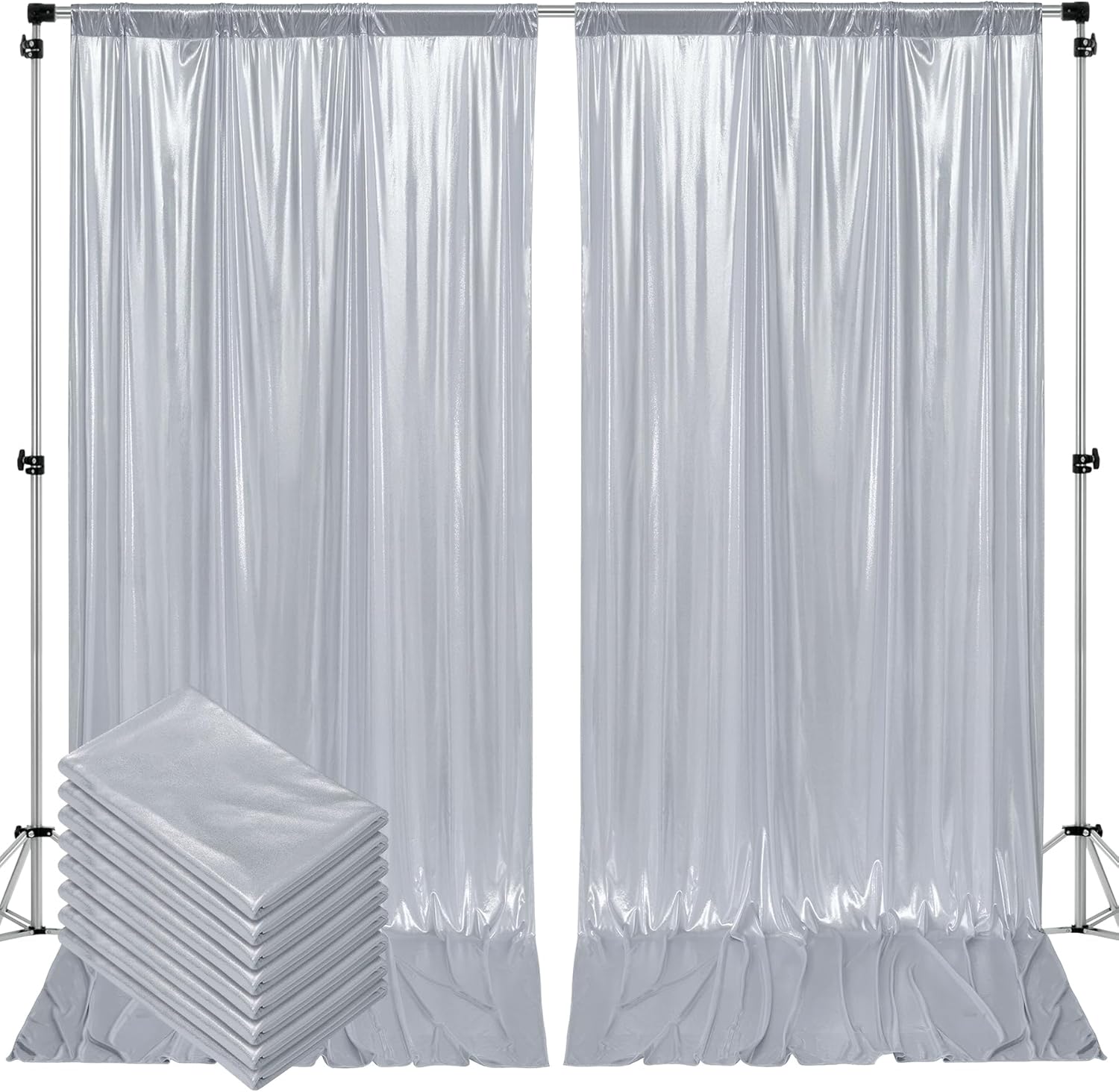 • New Glitter Thick Silver Backdrop Cloth: Package include 8pc 5*10ft silver backdrop drapes. Made of soft and smooth polyester fabric and glitter, more superior than ordinary sequin backdrop curtains. It's more thick and not falling off sequins, make your parties more charming and sparkling.