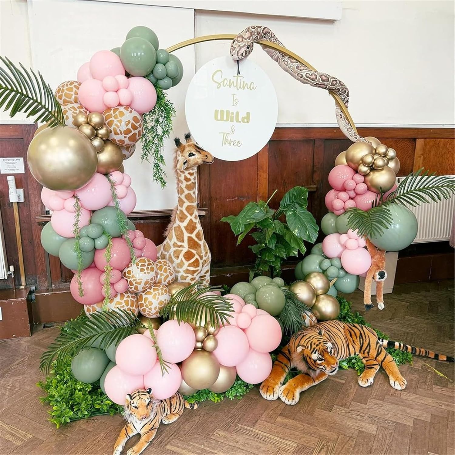 • High Quality Materials: This jungle safari baby shower party decorations is made of natural latex, and the pink and gold balloons are thick and durable, which means they will not break easily and last longer. In addition, all green pink ivory balloons have been strictly tested to ensure that they are not only durable but also safe for children.