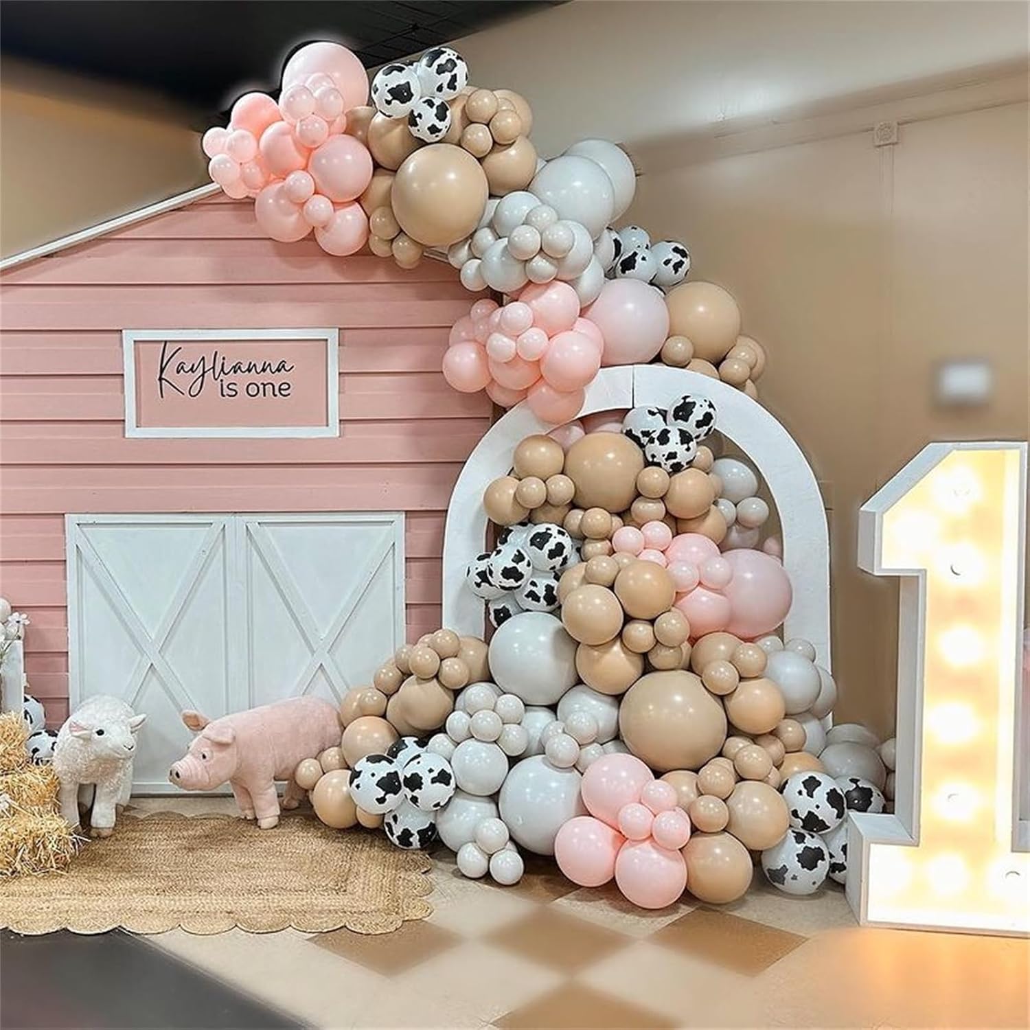• Party Balloons Set: The cowgirl balloons set have 60pcs 12 inch helium balloons, include 15pcs pastel pink balloons, 15pcs light pink balloons, 10pcs cream beige balloons, 10pcs cow print balloons, 10pcs white balloons, 2pcs pink and white balloon ribbon.