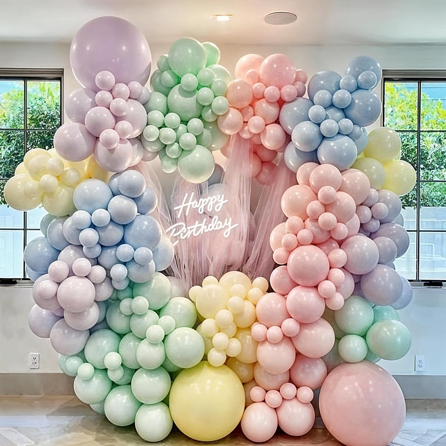• High Quality Materials: This pastel birthday decorations is made of natural latex, and the pink and blue balloons are thick and durable, which means they will not break easily and last longer. In addition, all pink and green balloons have been strictly tested to ensure that they are not only durable but also safe for children.