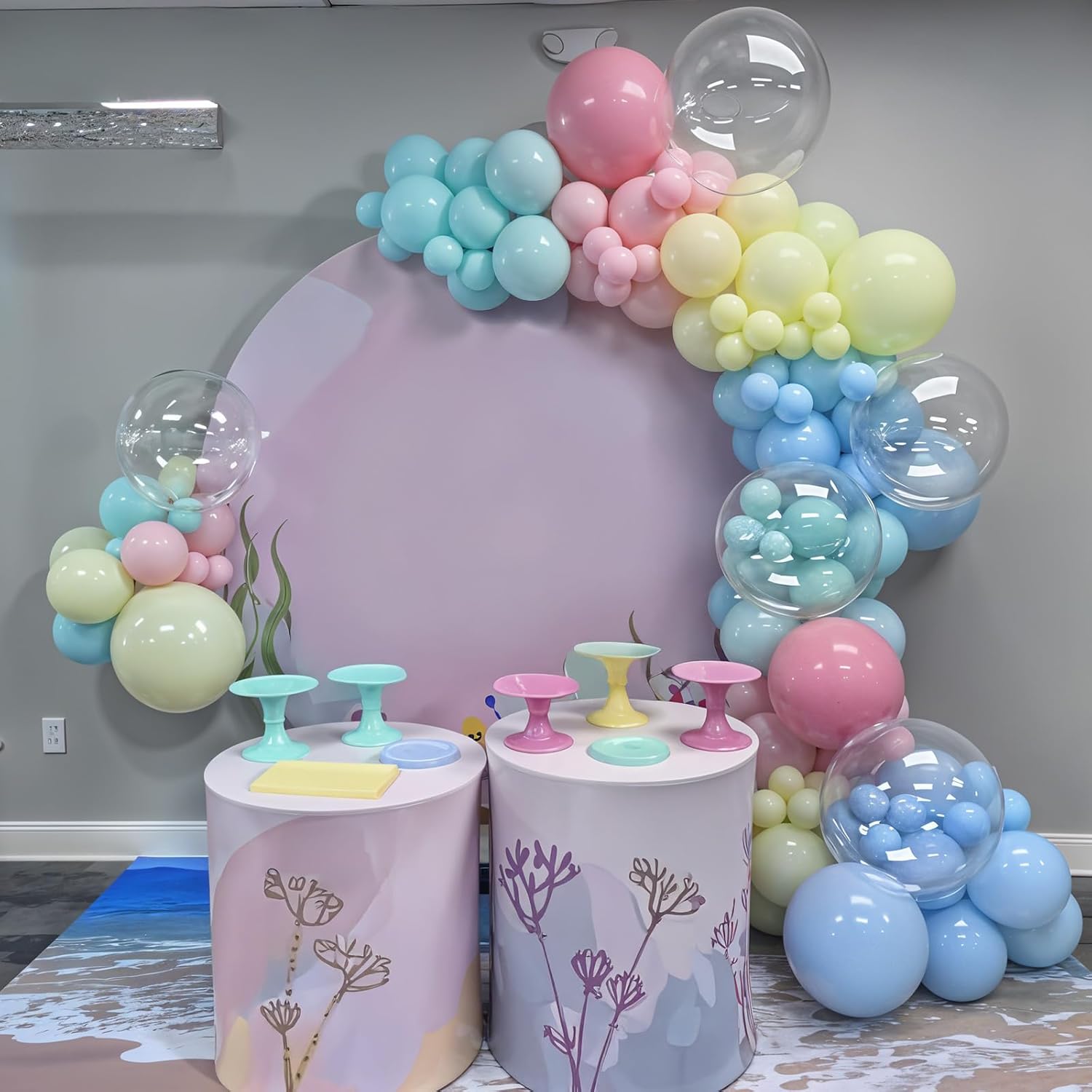 • Party Balloons Set: The under the sea balloons set have 60pcs 12inch helium balloons, include 10pcs light pink balloons, 10pcs light green balloons, 10pcs matte yellow balloons, 12pcs baby blue balloons, 10pcs chrome dark green balloons, 8pcs clear balloons, 2pcs balloon ribbon (pink, light blue).