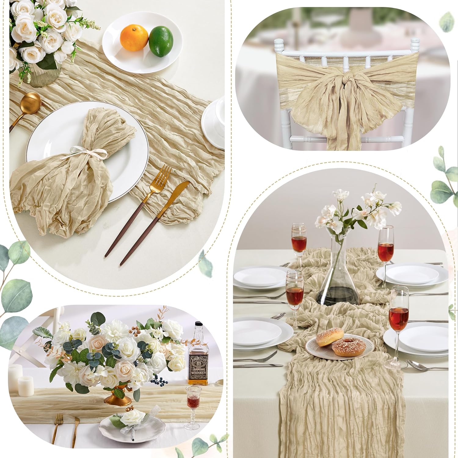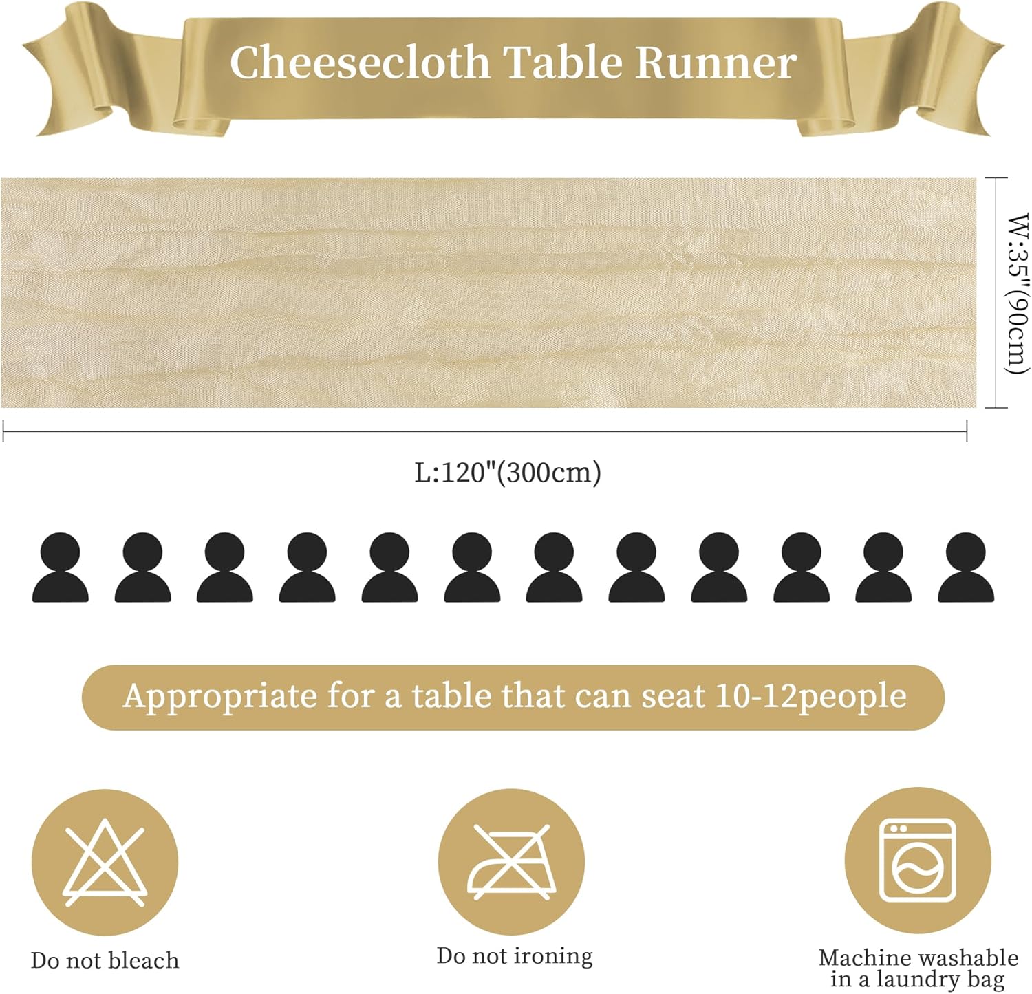 • ✿【PACKAGE INCLUDED】You will receive the cheesecloth table runners. Elegant and beautiful design, exquisite workmanship. Product size: Each boho table runner is 35 x 120 inches. Enough to cover rectangles and round tables, as well as long tables that are stitched together. It can even be used to belt chairs decorate napkins, background curtains. Round or square tables for 8-10 people, perfect for romantic and elegant party events.