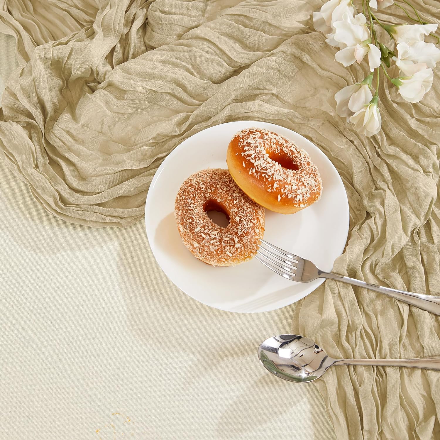 • ✿【PREMIUM MATERIAL】The cheesecloth table runner is made of high-quality polyester. Carefully sewn, delicate edge, not easy to lose thread, not easy to decolorize, lightweight and skin-friendly, can be cut into any length and shape. High-quality fabrics hang on banquet tables to add a romantic, sophisticated and fluid atmosphere and can be paired with flowers, candlesticks, greenery and other decorations to impress guests.