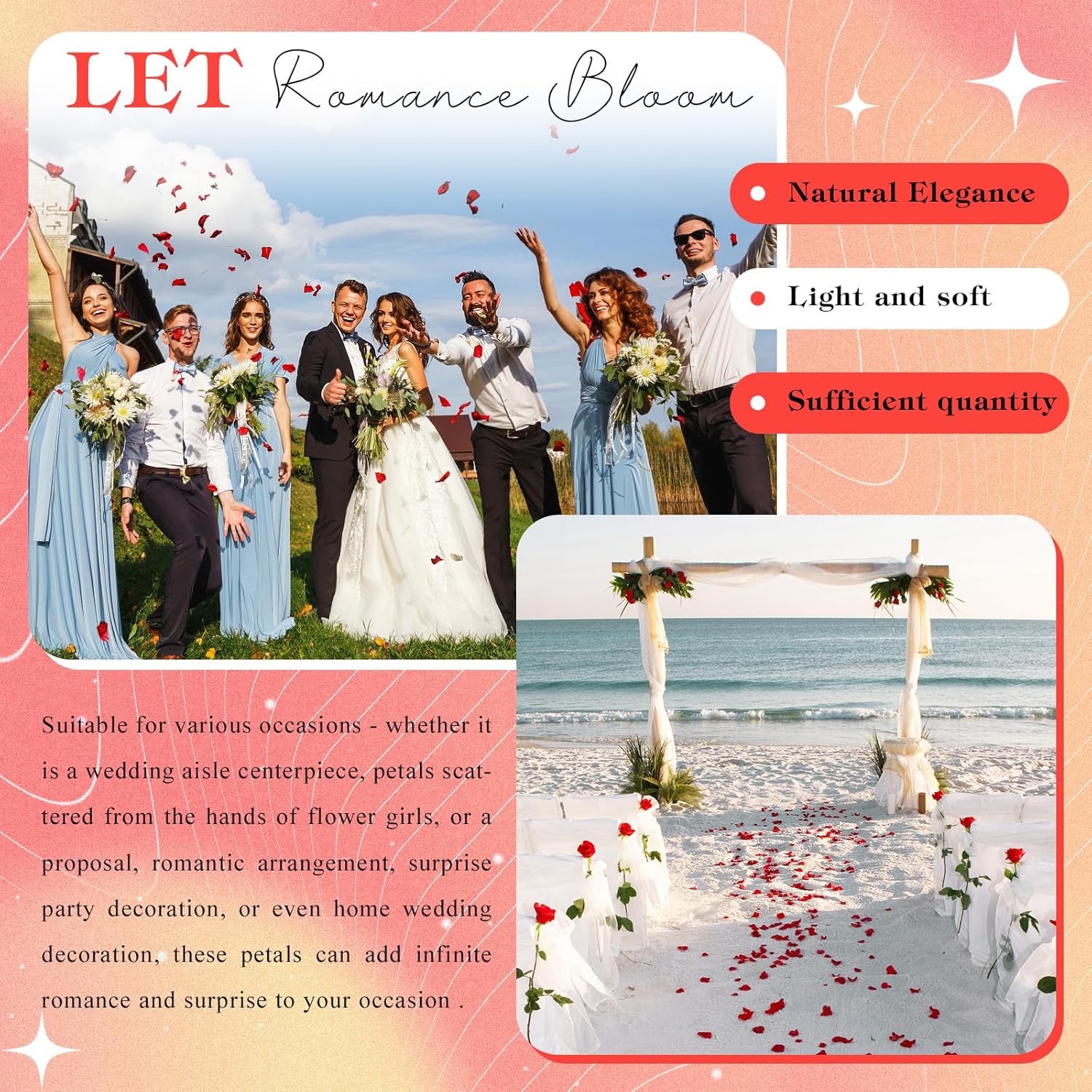 • Versatile Decoration: Each petal is made by natural drying, retaining the soft texture and bright red color of the petals. Whether it is used for laying the floor, decorating the table, or embellishing the romantic garden or hall, it can show the perfect visual effect and bring an unforgettable experience to your romantic moment.