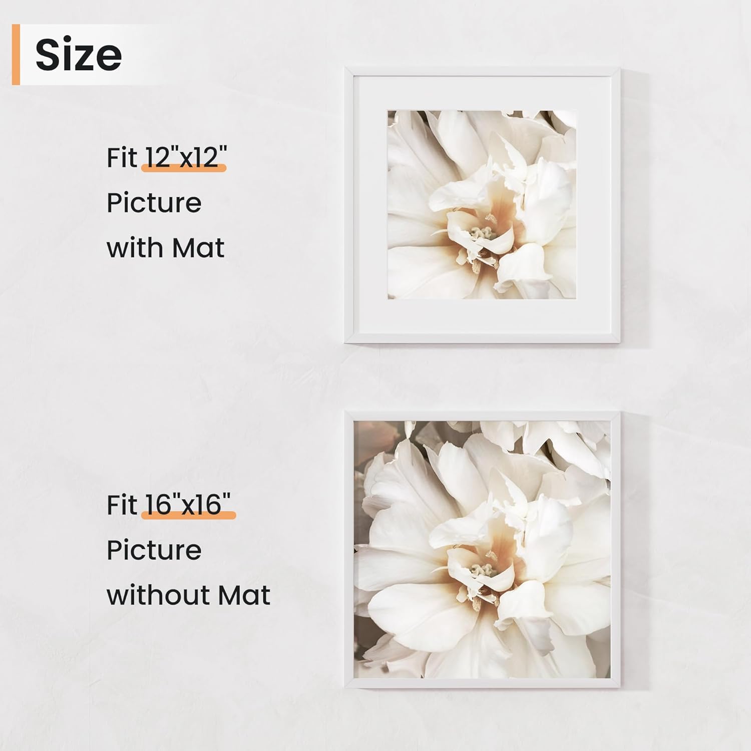 16x16 inch Picture Frame, 16x16 Photo Frames with 12x12 Removable Mat - High Definition Plexiglass - Vertical and Horizontal Display - Wall Hanging Frame - White, 3 Pack