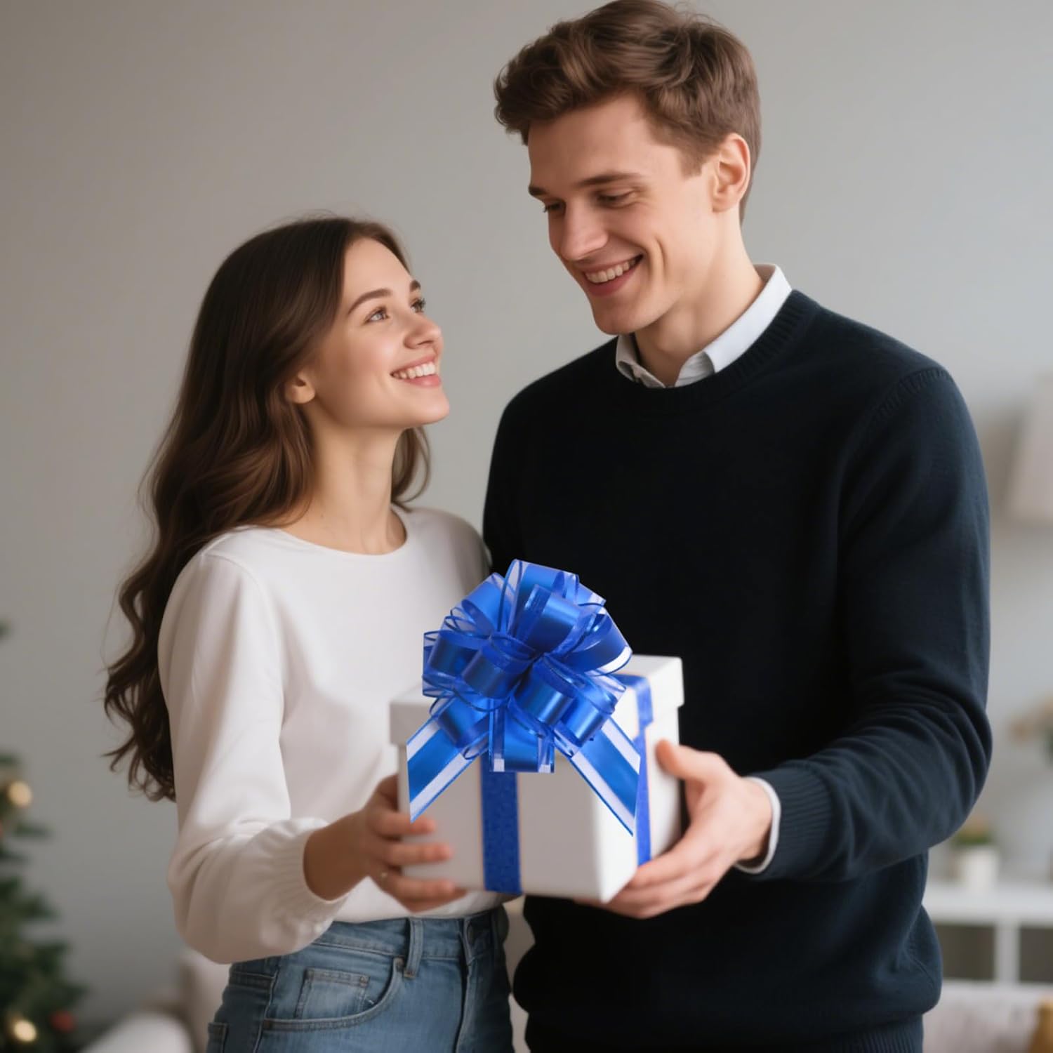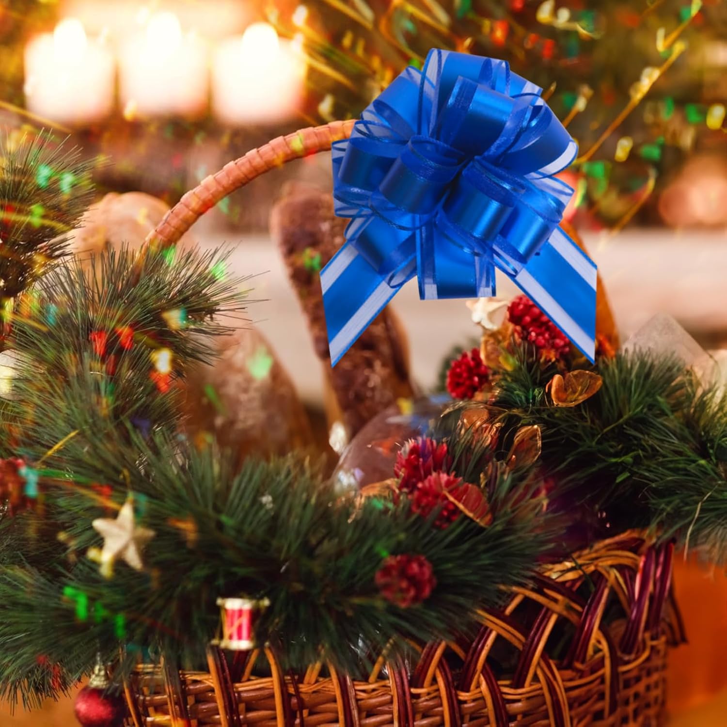 6 PCS 6 Inch Organza Blue Pull Bows - Perfect for Gift Wrapping, Wedding Decor, Car Bows, Birthday Parties, Christmas, and Valentine's Day