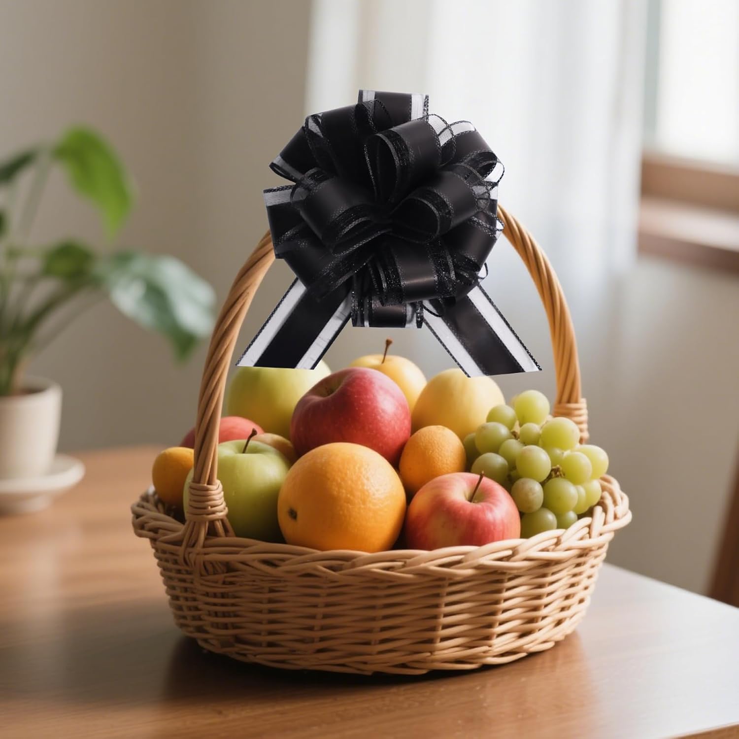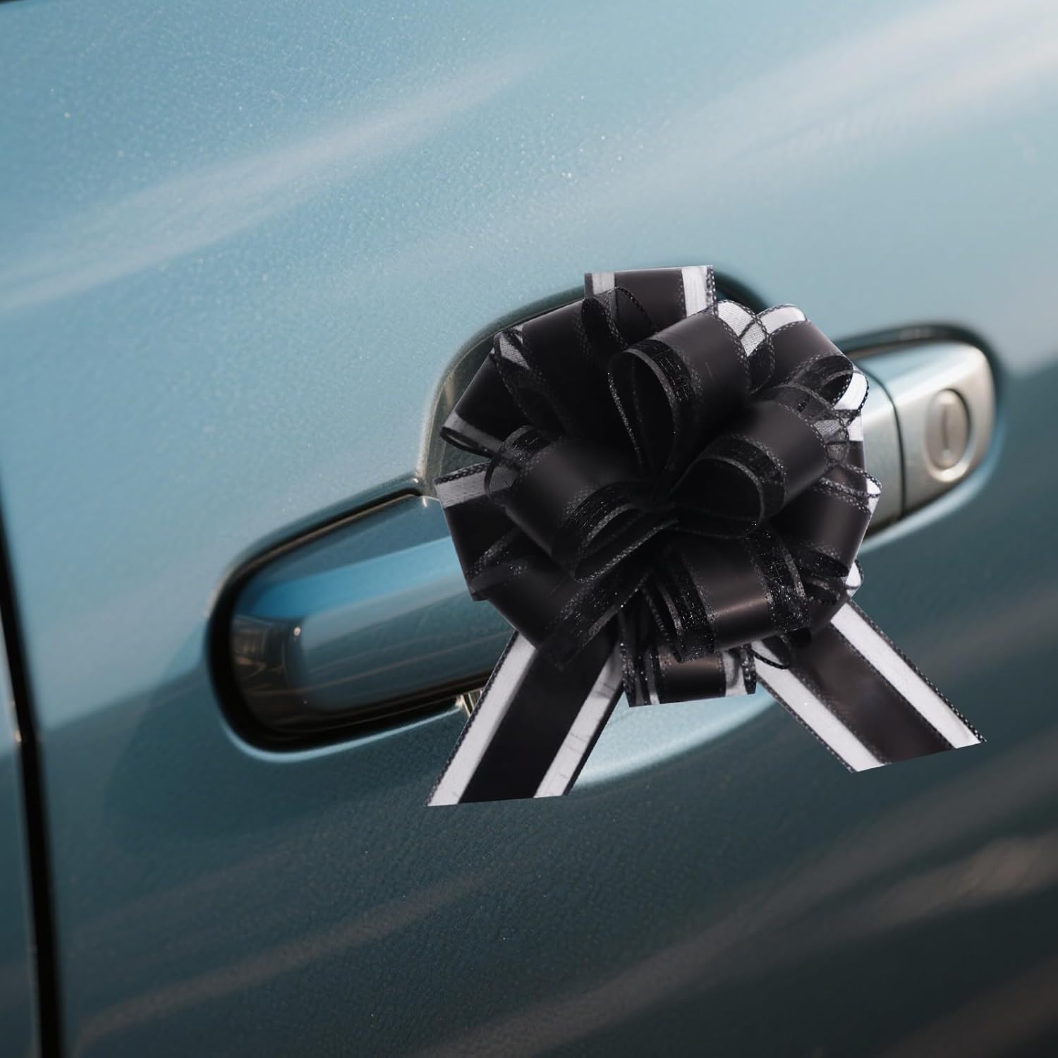 6 PCS 6 Inch Organza Black Pull Bows - Perfect for Gift Wrapping, Wedding Decor, Car Bows, Birthday Parties, Christmas, and Valentine's Day