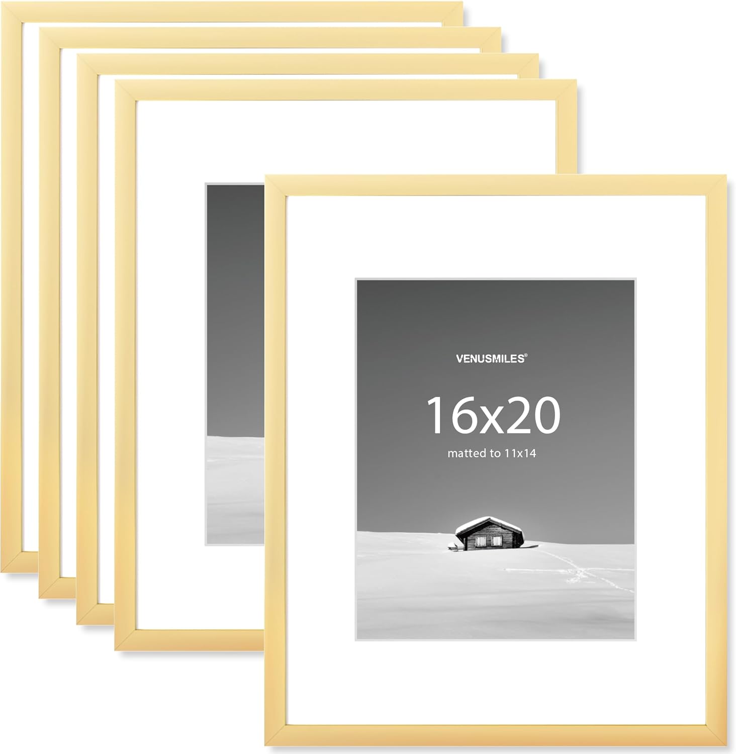 16x20 inch Picture Frame, 16x20 Photo Frames with 11x14 Removable Mat - High Definition Plexiglass - Vertical and Horizontal Display - Wall Hanging Frame - Gold, 5 Pack