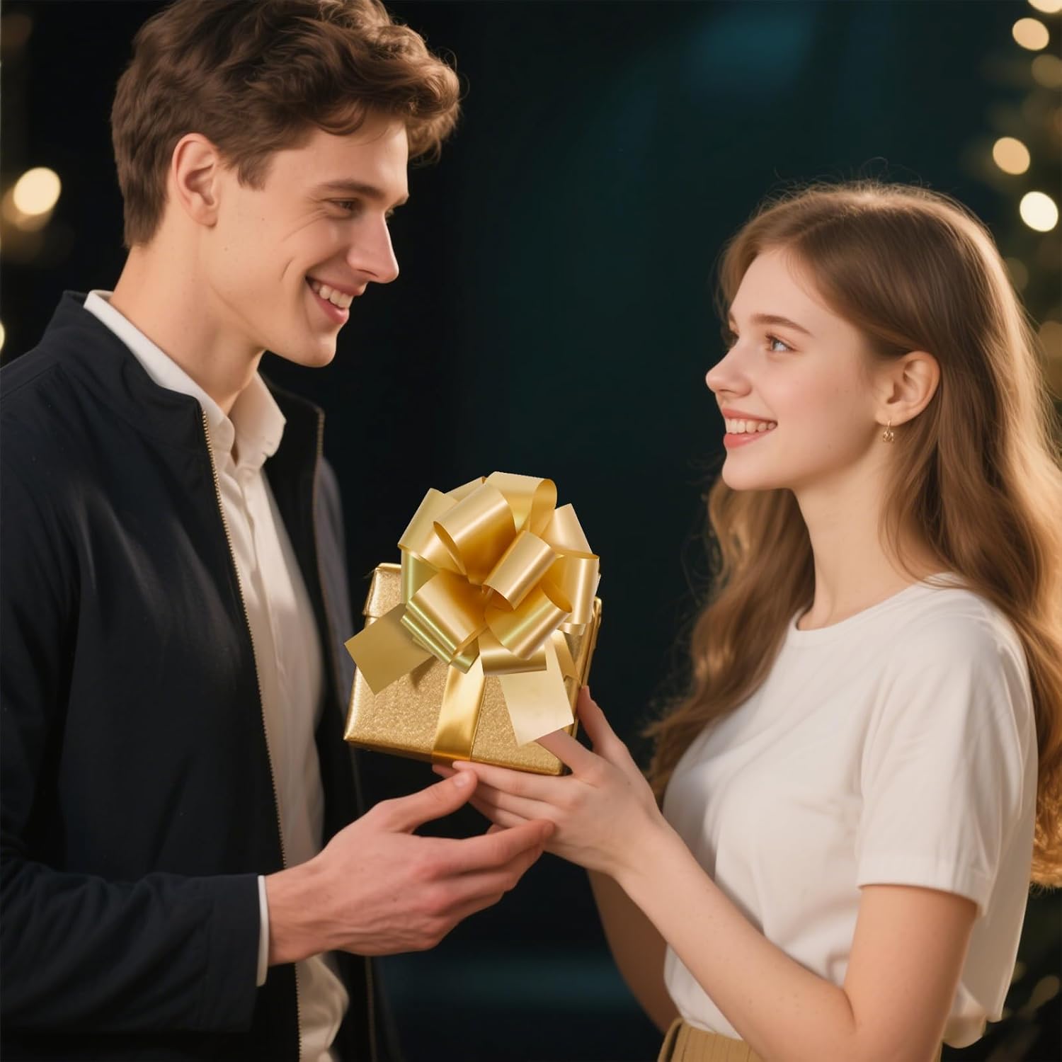 6 PCS 6 Inch Golden Pull Bows - Perfect for Gift Wrapping, Wedding Decor, Car Bows, Birthday Parties, Christmas and Valentine's Day