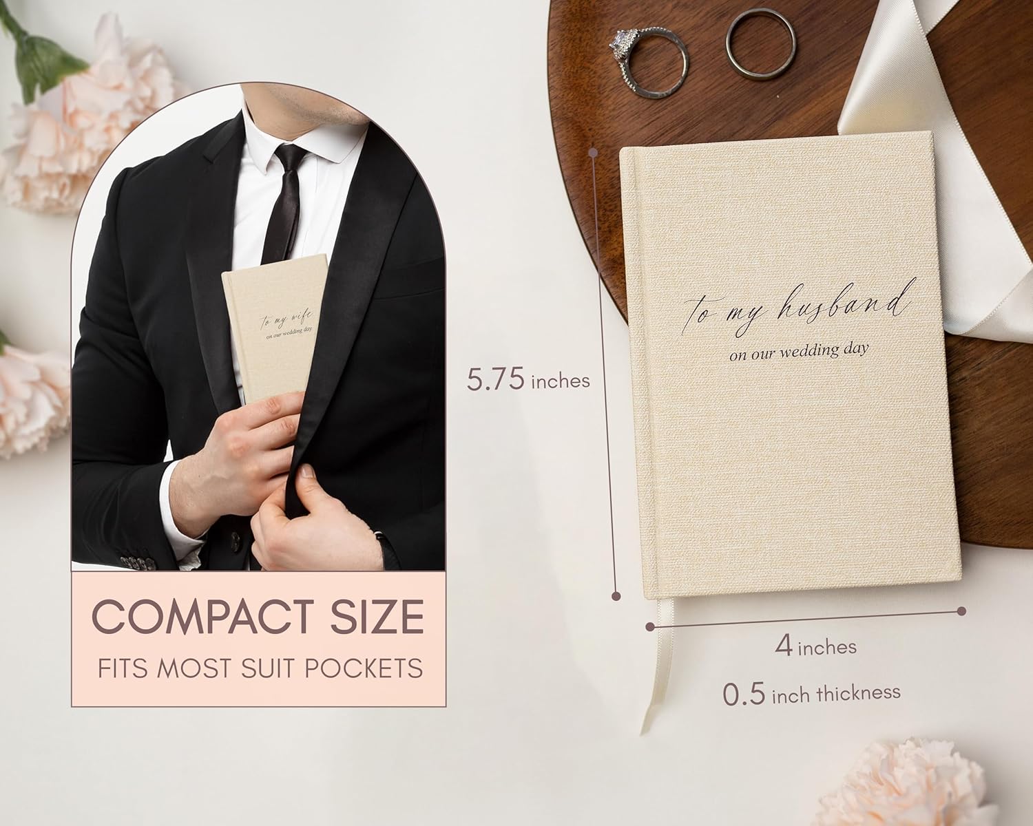 • Measuring at 5.75 x 4 x .5 inches, this vow book set is designed to be conveniently portable yet substantial enough to hold your most cherished words. The books are made with premium quality materials, featuring 140 gsm paper that is thick and luxurious to the touch. The 40 lined pages on each book offer ample space for couples to write their vows, while the compact size makes them easy to carry and store, allowing couples to cherish their promises for years to come.