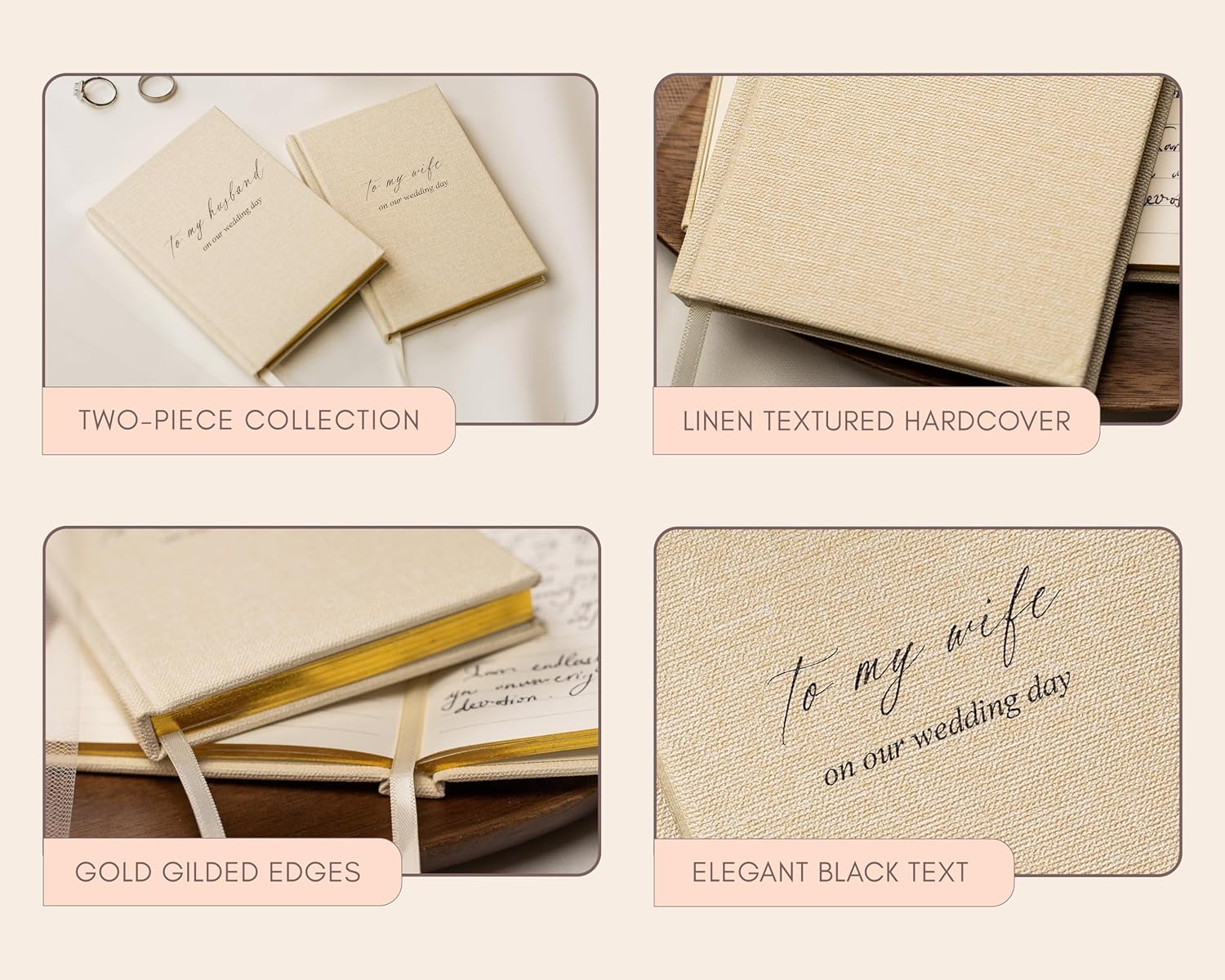 • Each vow book is meticulously crafted with 140 gsm paper, ensuring durability and a luxurious feel. Each book contains 40 lined pages with gold gilded edges, adding a touch of elegance to your wedding day prop or bridal shower gift.