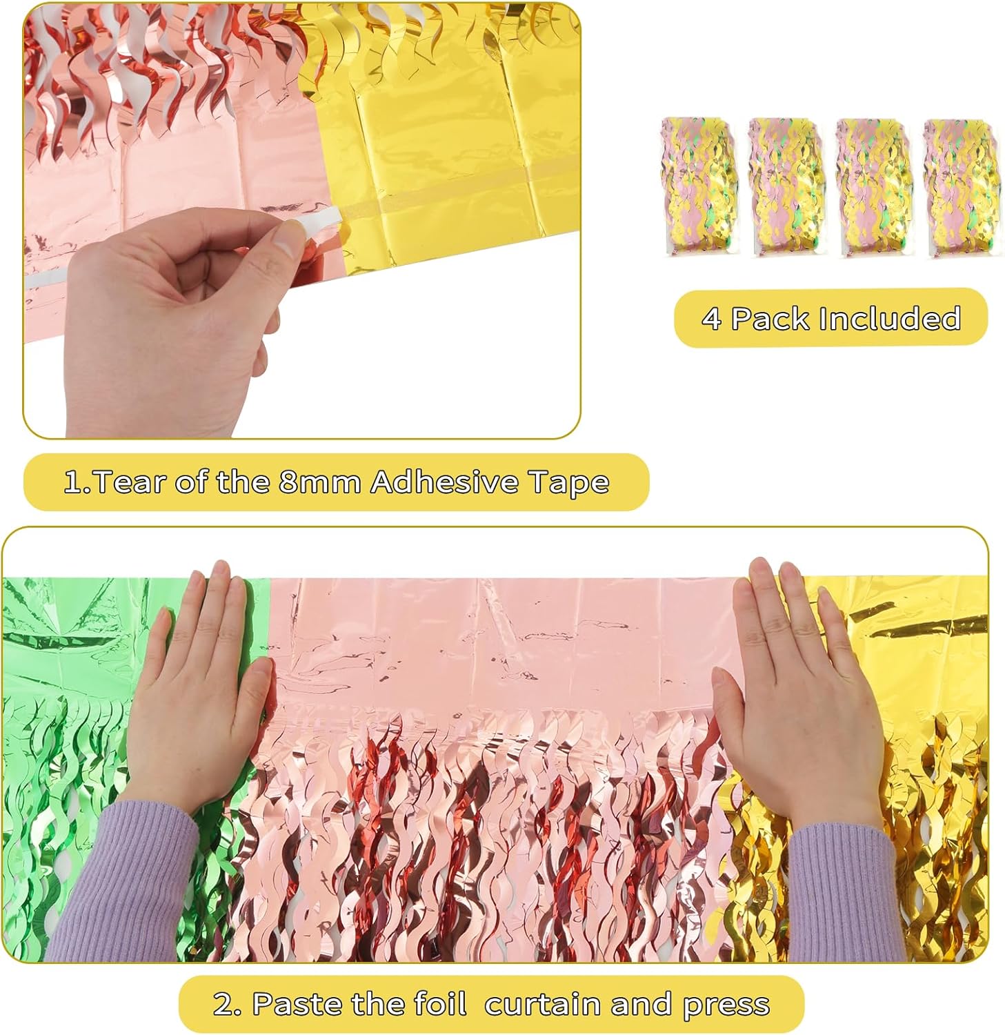 • Easy To Use: This foil backdrop comes with double sided tape on the back of them, what you need to do is just gently take it out of the package, peel the tape off then paste the fringe curtain on the top of wall or door