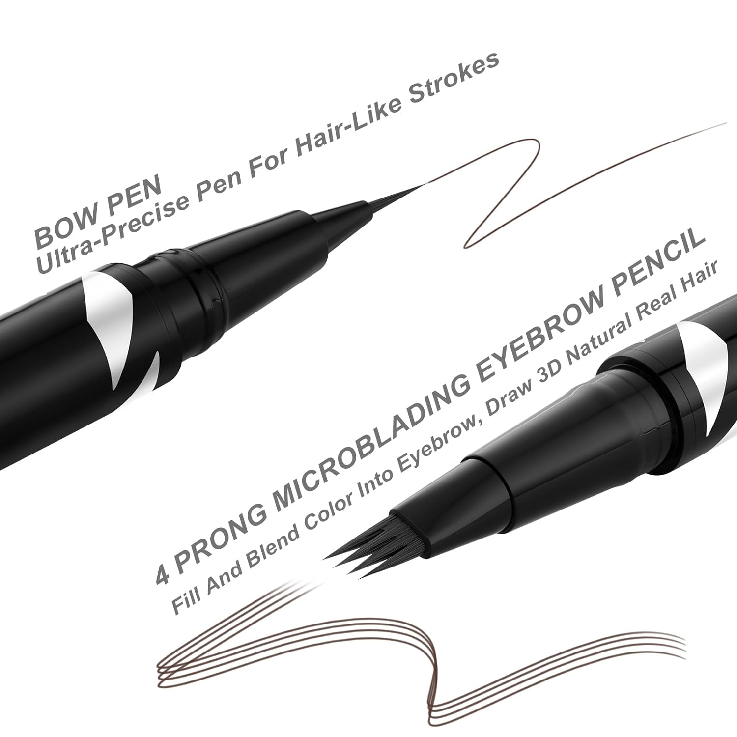 LAVONE 2-IN-1 Dual-ended Waterproof Eyebrow Pencil, 4 Tip Microblading Pen and Ultra-Precise Brow Pencil, Dual-ended Eyebrow Brush, Natural Looking - Chocolate