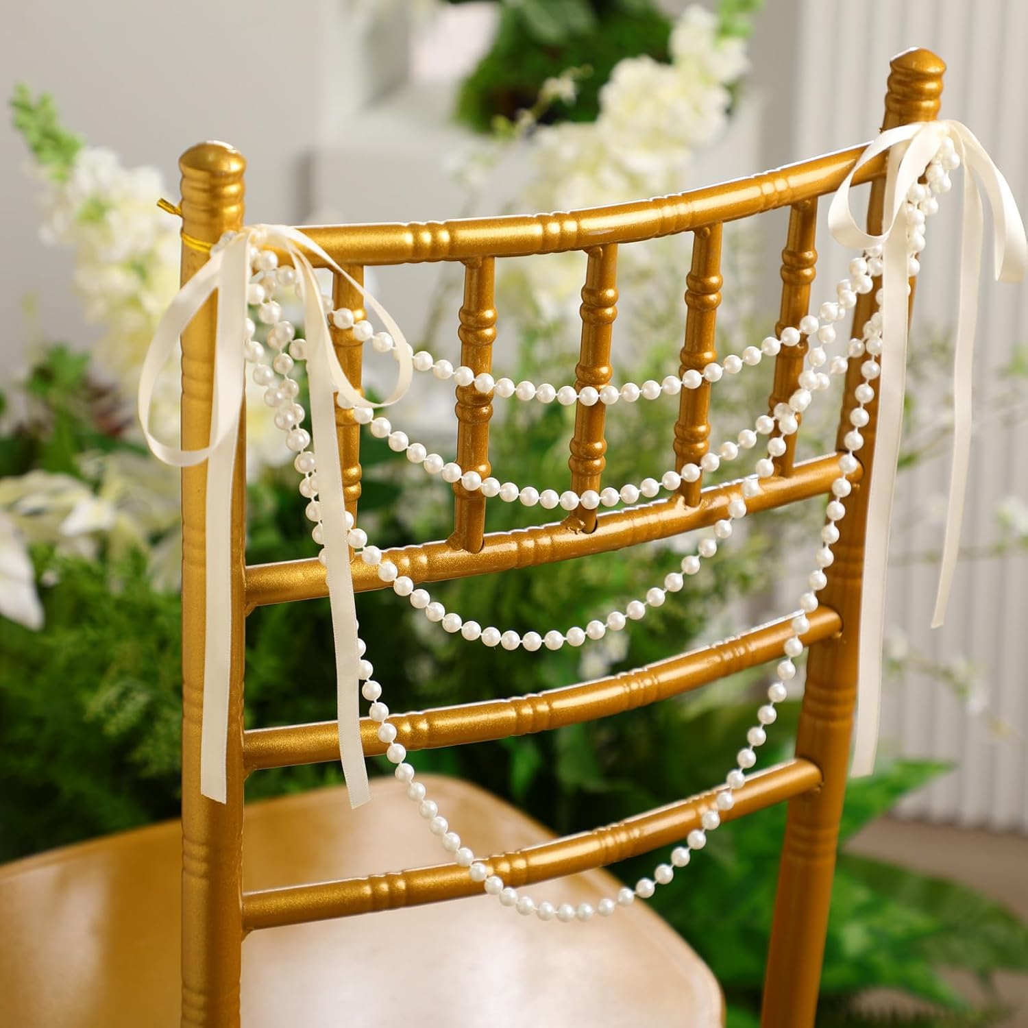 • Sufficient Quantity for Versatile Use: this package includes 16 wedding chair back garland sash with pre tied ivory bows, providing ample quantity for most applications; Whether you're decorating for a wedding, party, or special event, the large quantity allows for creative arrangements, such as pearl chair back garlands or beautiful centerpieces, ensuring your decor is visually appealing and eye catching
