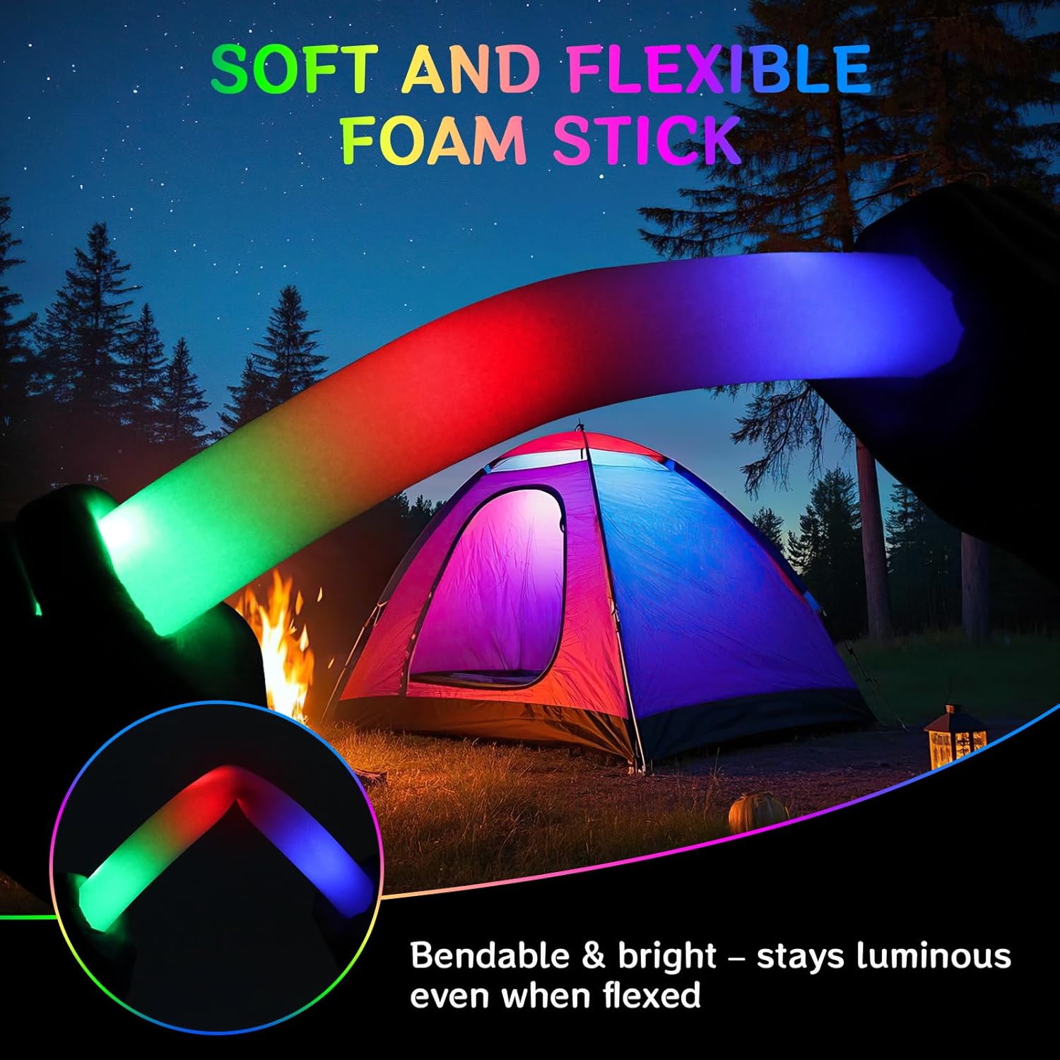 • Soft & Safe Foam Design – Perfect for Kids and Adults: Made from lightweight, durable foam, these glow sticks are safe to wave, toss, and dance with, making them a hit with both kids and adults. Their soft material makes them ideal for family-friendly events, New Year’s Eve parties, sporting events, and more.