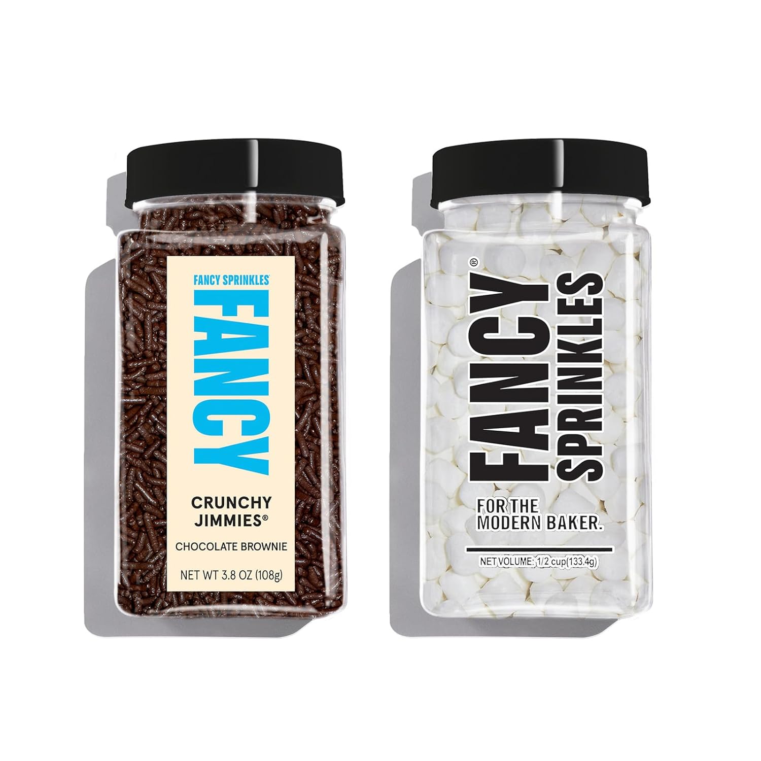 • FANCY SPRINKLES: Decorate your cookies, cakes, cupcakes, smores & hot chocolate with glamourous, one-of-a-kind, sweet, crispy jimmies and soft fluffy mini-marshmallows.