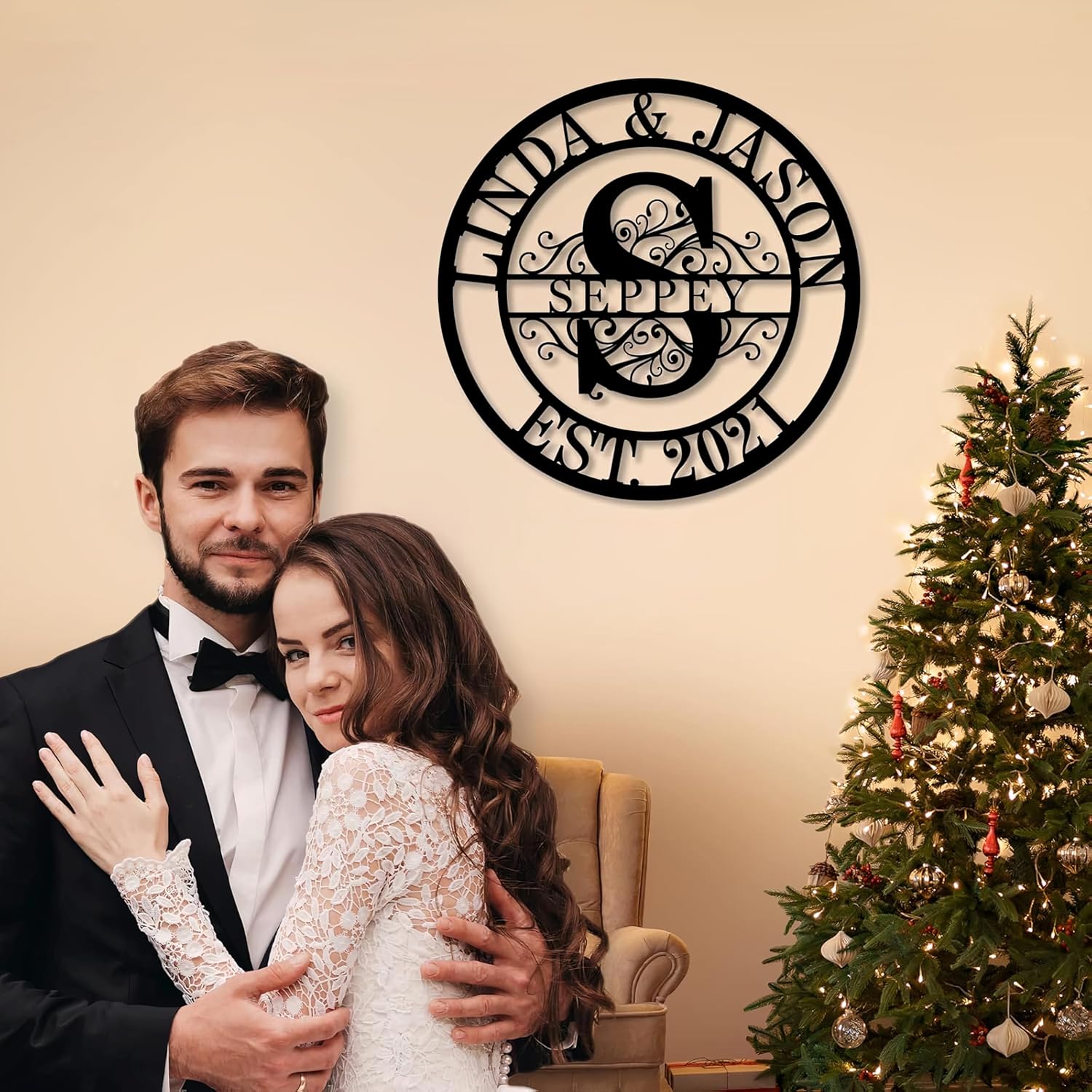 Personalized Metal Name Signs, Split Letter Monogram Wall Decor, Custom Last Name Sign, Family Name Sign for Outdoor, Personalized Wedding Gift, Garden Decor, Metal Wall Art, Housewarming Gift (MonogramDesign_8)