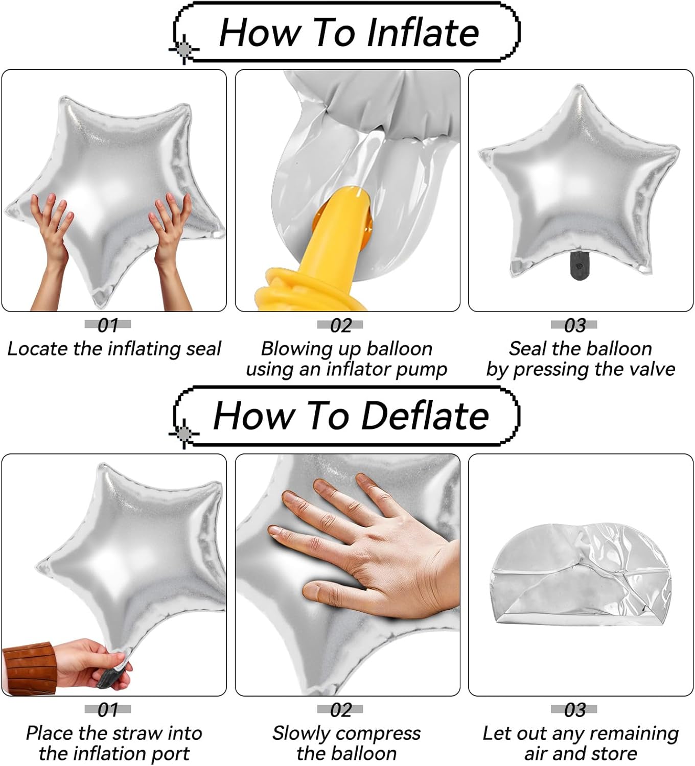 • 【Effortless Setup】Inflate with helium or air using a pump and secure easily for polished decor. These Star Foil balloons are simple to assemble and reusable for multiple events, making decorating quick and effortless.