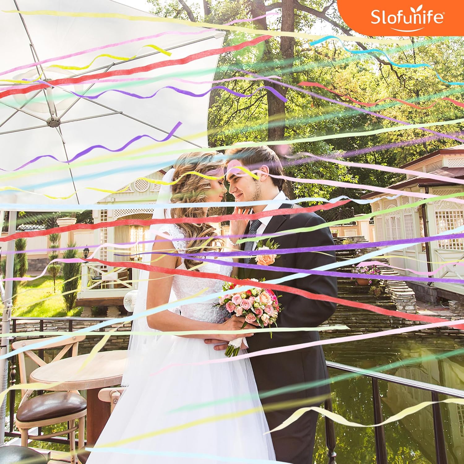 • Quiet And Safe: Don't worry about the Slofunife streamer poppers being too loud when you use it, and it won't make any sound. The strips of our streamer poppers are made of 100% paper and will not scare yourself or animals during use. You can use them to create a positive and active atmosphere and light up your party