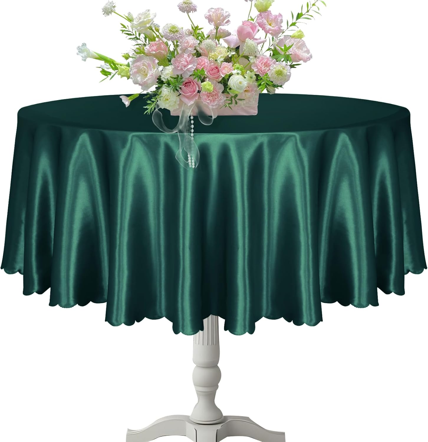 KKJIAF 1 Pack Round Table Cloths 90 Inch, Hunter Green Overlay Round Satin Table Cover, Silky Satin Dining Tablecloths for Wedding Buffet Parties Banquet Decoration