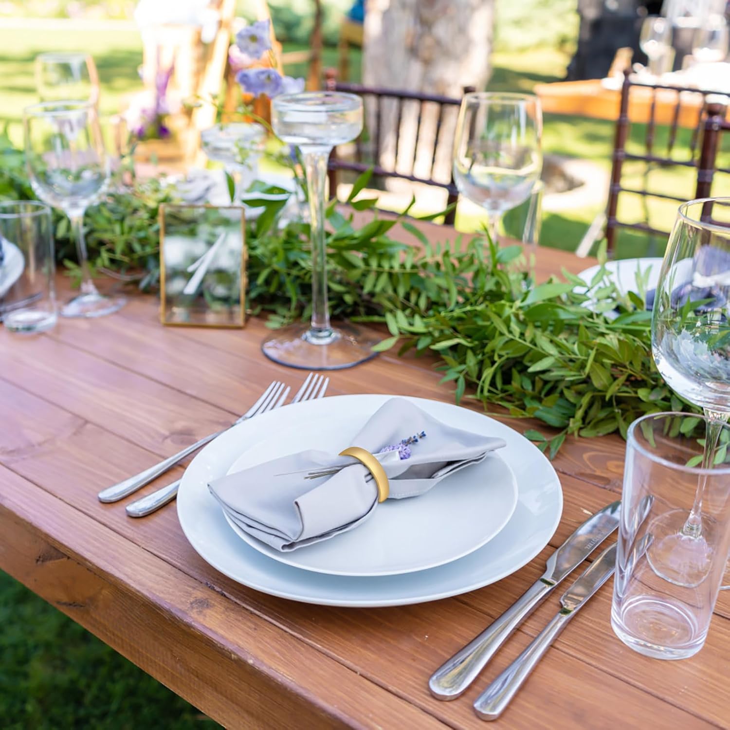 • D-shape Design:The D-shape napkin rings have a flat back that allows the napkins to sit nicely on the plate or table, keep the napkin in a circular shape and will dress up any place setting
