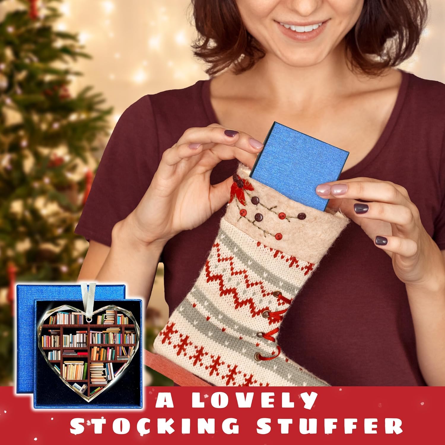 Pawzity Book Lovers Gifts - Gifts for Book Lovers - Books Ornaments for Christmas Tree - Gift for Reading Lover Women - Gift Ideas for Books Lover, Bookworm, Women, Librarian, Nerd - Glass Ornament
