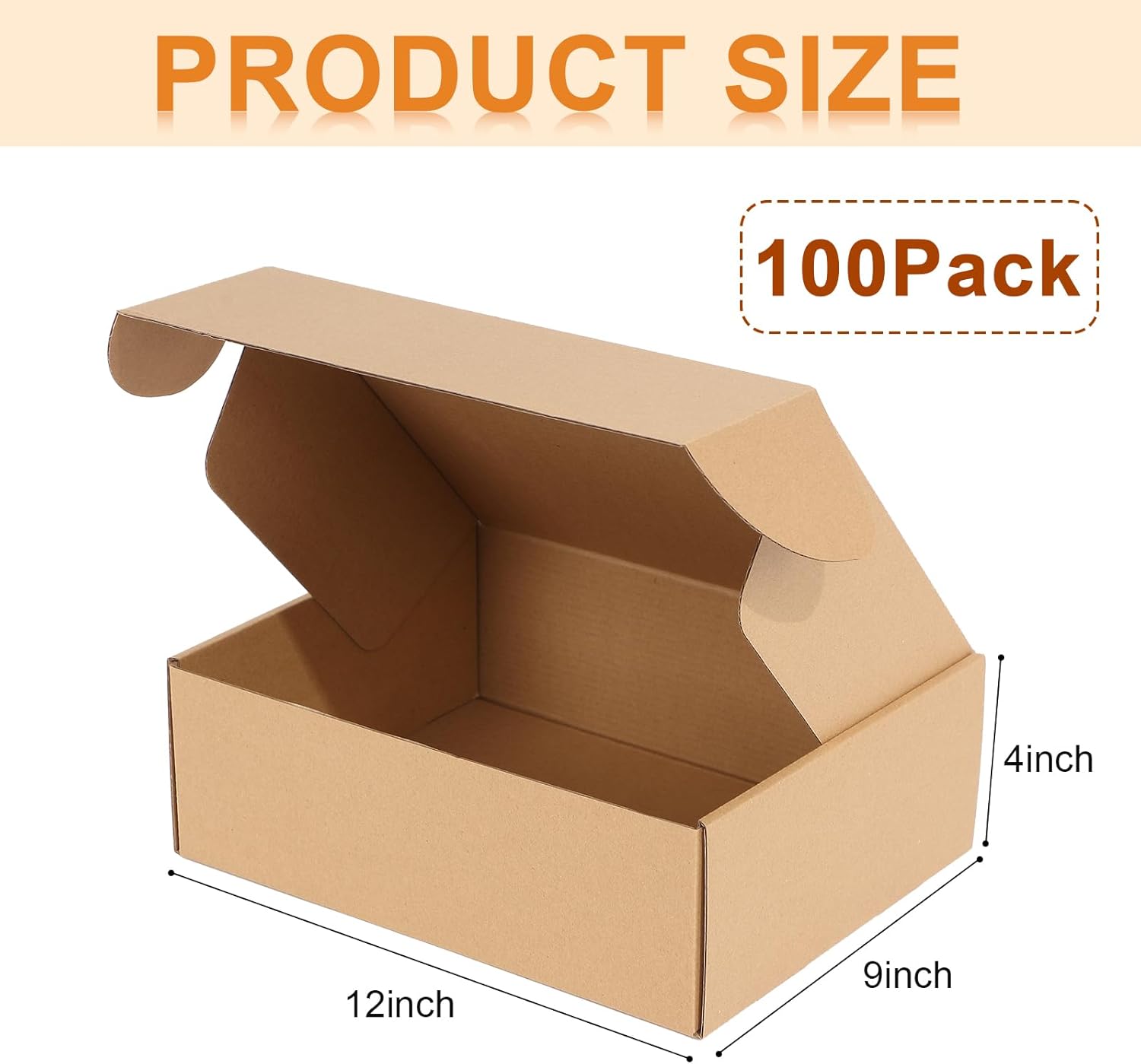 Qilery 100 Pcs Shipping Boxes Cardboard Gift Corrugated Cardboard Brown Boxes Mailer Packaging for Mailing Small Business Present (12 x 9 x 4 Inches)