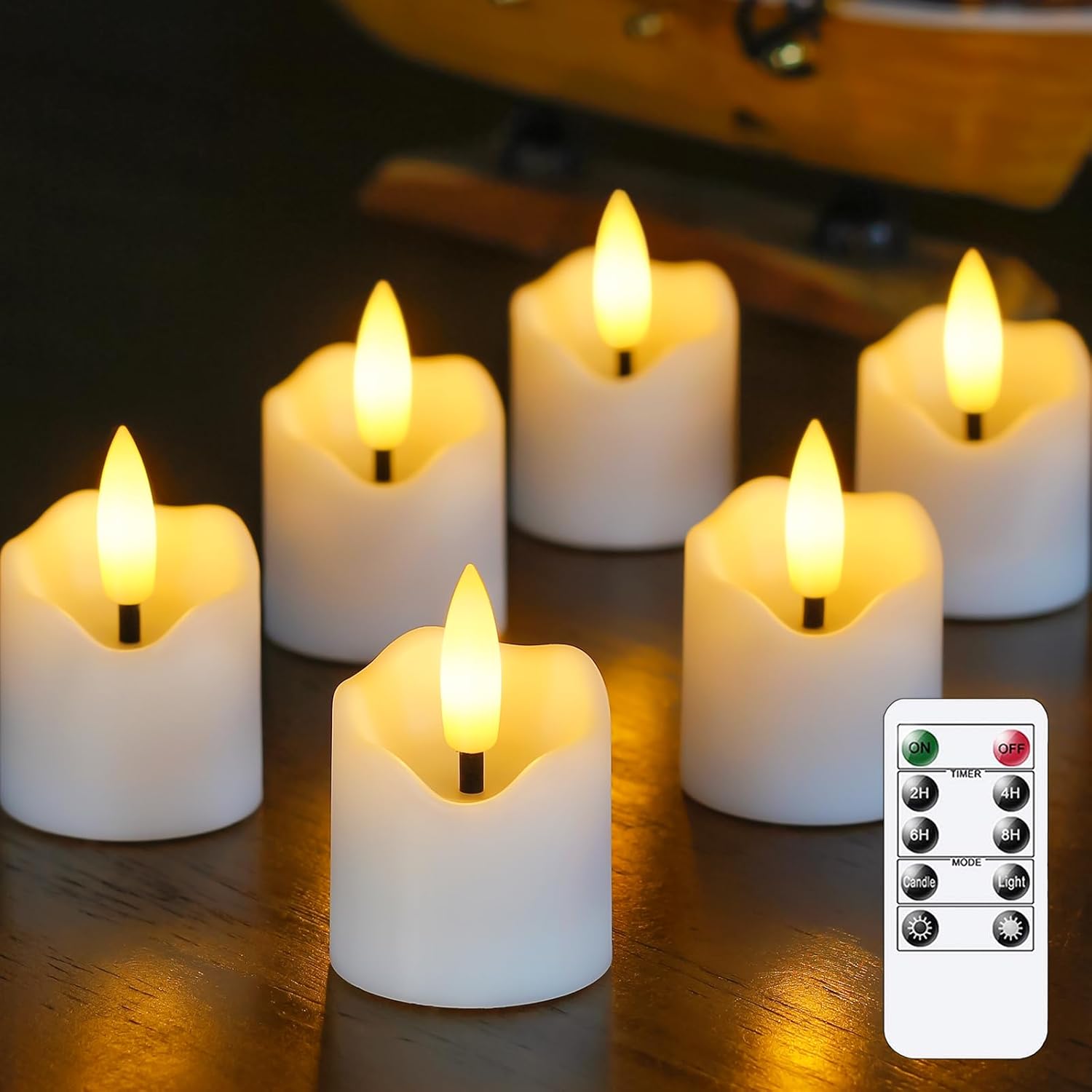 • Convenient Timer for Automatic Operation: The included remote control allows you to set timers for 2, 4, 6, or 8 hours. Once programmed, the flameless votive candles will automatically turn on and off at the same time each day, creating convenient and consistent ambiance