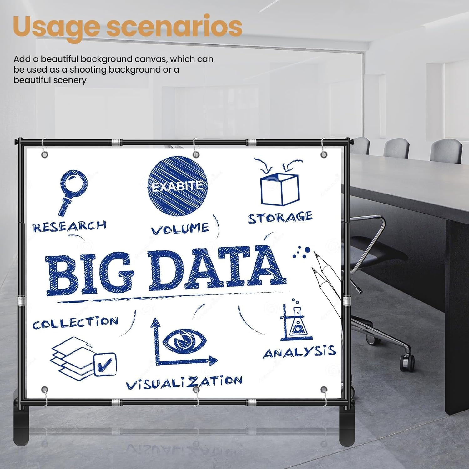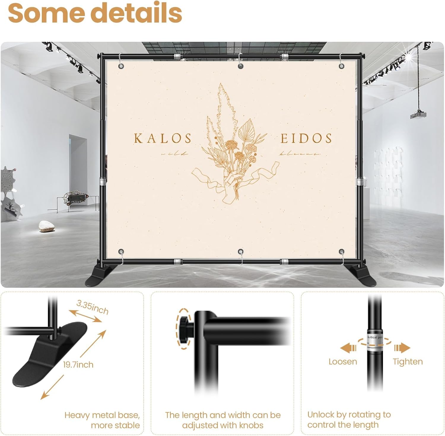 • 【Adjustable Frame】: The telescopic banner stand is suitable for multiple size, They are all telescopic and can be infinitely adjusted to match the size you need, Height adjustable (Min 3.4ft - Max 10ft), width adjustable (Min 6.2ft - Max 10ft).