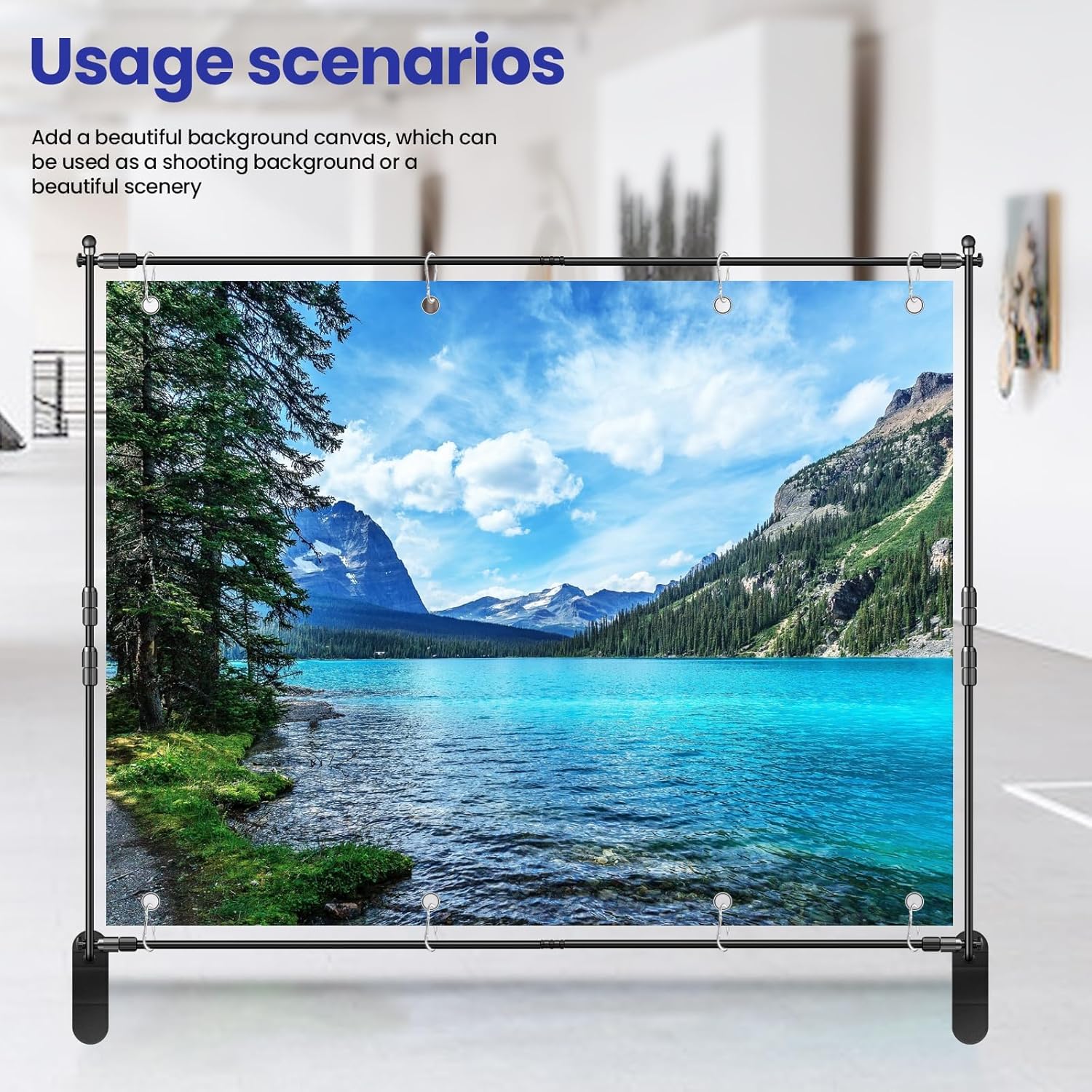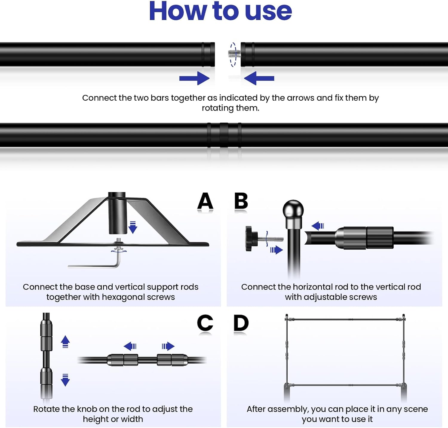 • 【Wide Application】The heavy duty backdrop stand is perfectly suitable for trade show, parties, conferences, promotion banner, weddings, birthday, baby shower, exhibitions, business events and so on. Photography backdrop stand can hang drapes, balloons to make your backdrop amazing, the carrying bag is convenient to store and transport it anywhere with you.