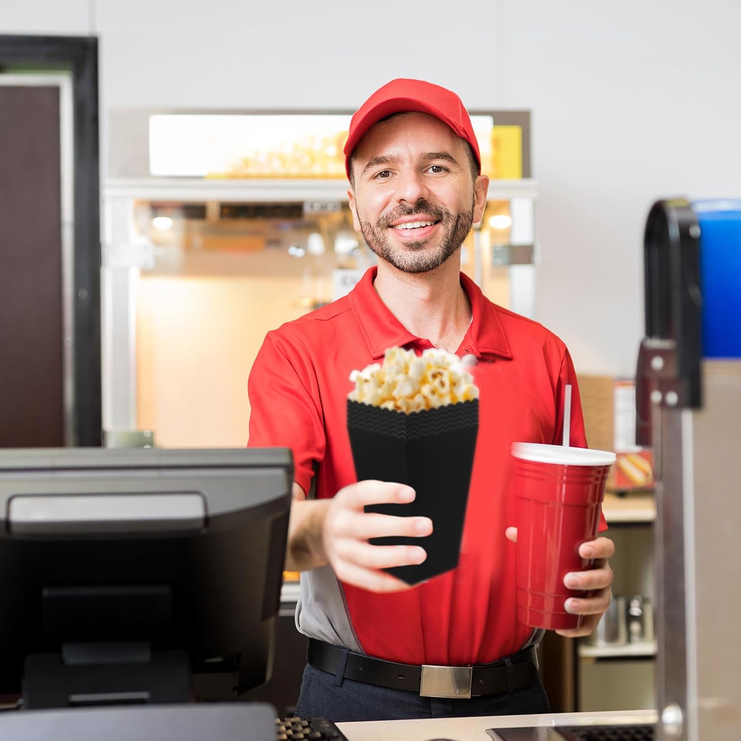 • Practical and Multifunctional: Black popcorn boxes with large opening design, you can easily and quickly take out the popcorn.these birthday popcorn bags can be applied not only for popcorn, but also for various snacks, such as french fries, potato chips, candy, biscuits, treats, etc., bringing you a lot of convenience