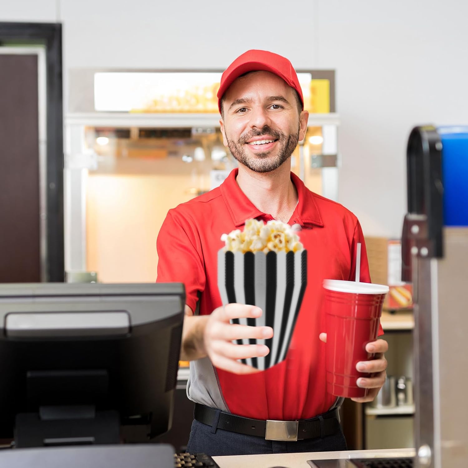 • Practical and Multifunctional: Black popcorn boxes with large opening design, you can easily and quickly take out the popcorn.these birthday popcorn bags can be applied not only for popcorn, but also for various snacks, such as french fries, potato chips, candy, biscuits, treats, etc., bringing you a lot of convenience