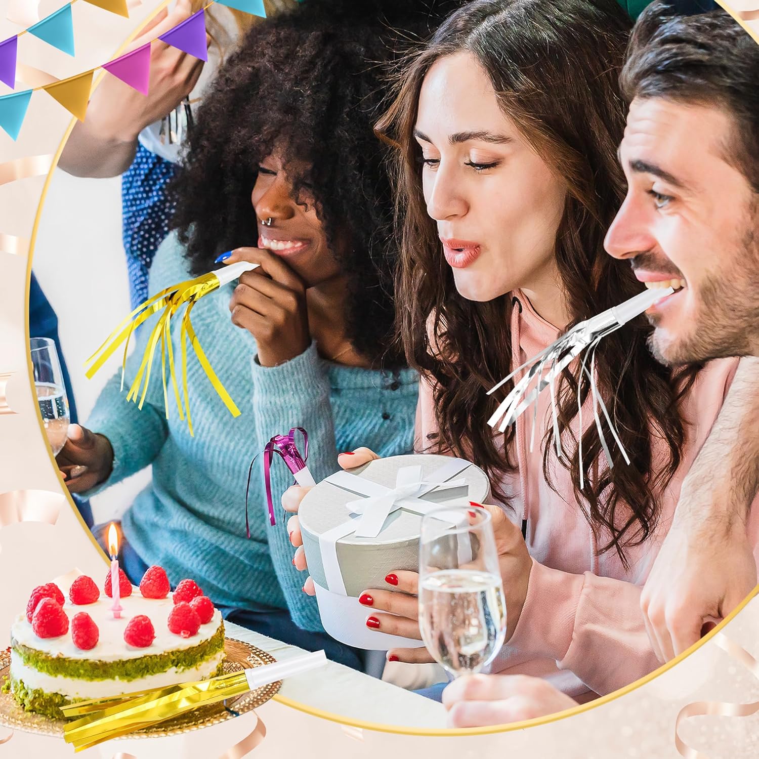 12 Pcs Glitter Noise Makers Metallic Fringed Party Blower for Adults Birthday Graduation New Years Party Favors Supplies (Gold and Silver)