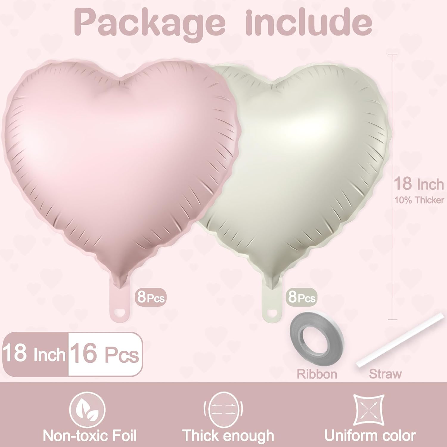 • Package Include: 18 inch heart shaped balloons (8 Pcs Pink, 8 Pcs White Sand) + straw and ribbon