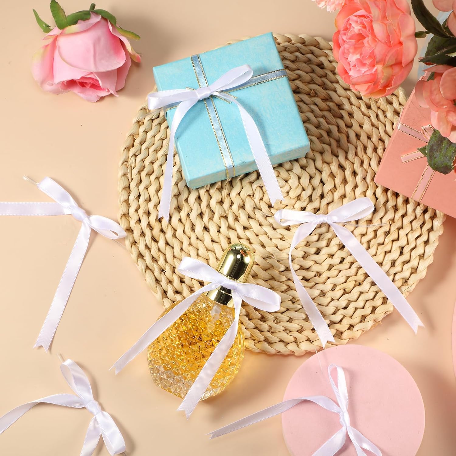 • White Twist Tie Bows: our package includes 50 white ribbon bows and 50 twist ties; This set will easily meet your various needs for decoration or DIY projects; The dimensions of our bow are approximately 3 x 4 inches/ 8 x 11 cm; The decent size is suitable for decorating gifts, packages, and other items; You can have fun with family and friend making eye catching decorative pieces by DIY