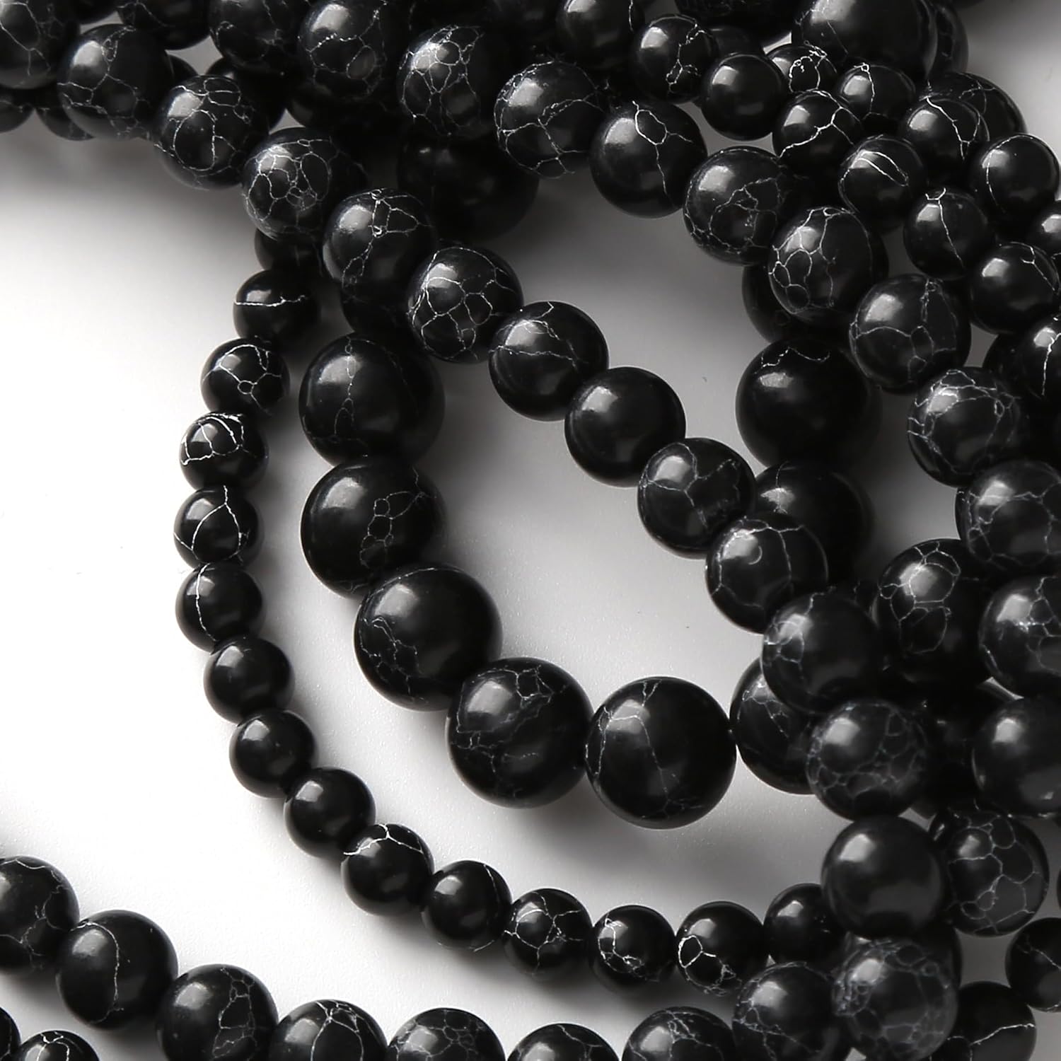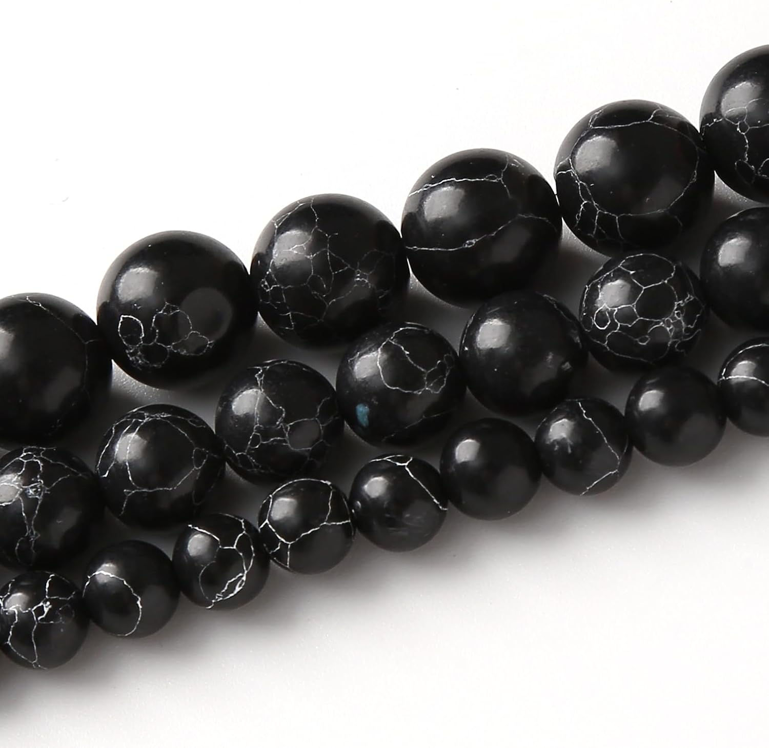 Black Turquoise Stone Beads Gemstone Round Crystal Energy Jade Beads Stone Beads for Jewelry Making DIY Bracelet Necklace Jewelry Making 1 Strand 15.5inch 31PCS 12MM