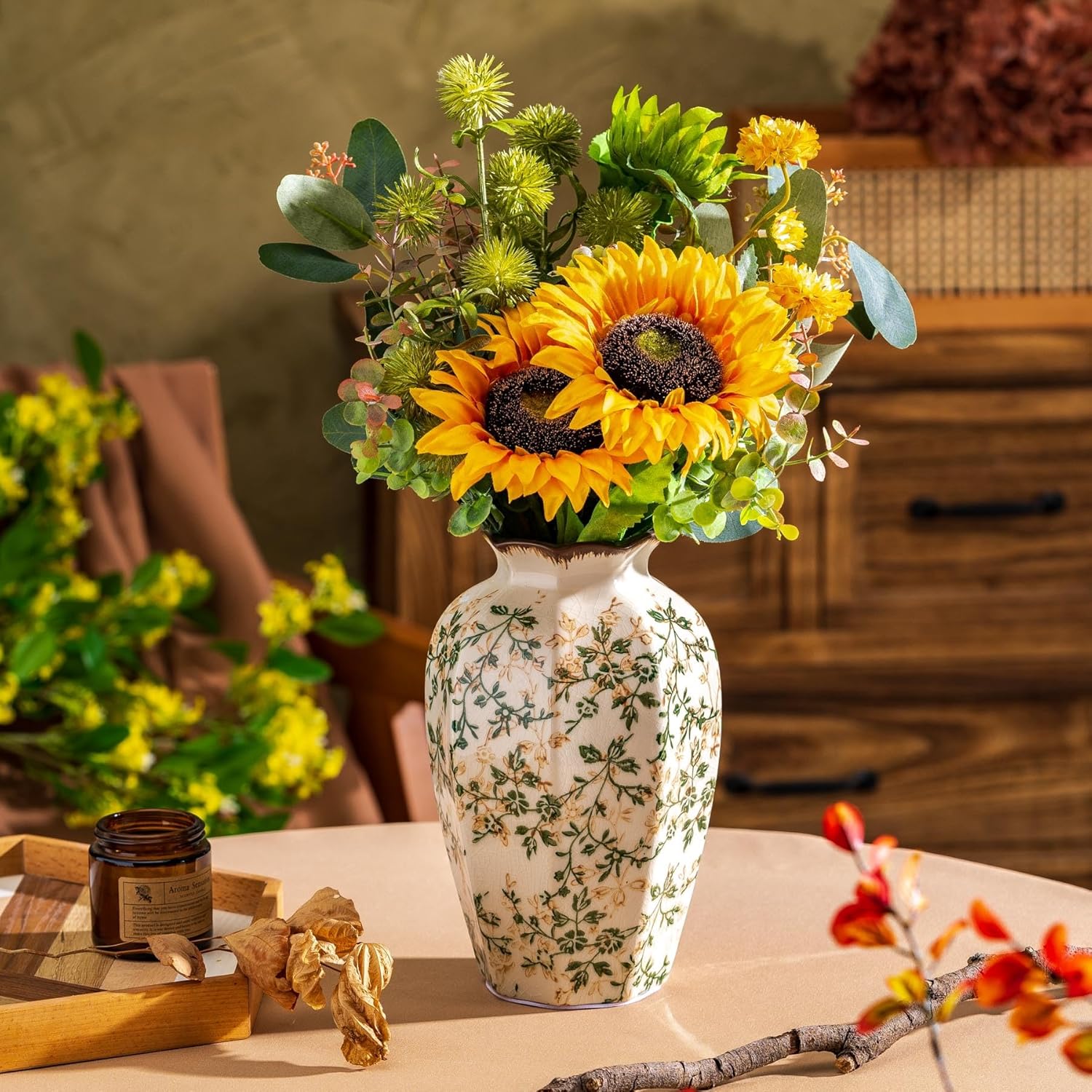 • ELEGANT DESIGN: The SURE YUESI handcrafted pastoral octagonal vase features a unique green and beige design with a vintage-inspired silhouette. This decorative ceramic vase is perfect for adding rustic charm to your home dΓ©cor, making it a standout piece for green vases home decor, farmhouse vase collections, or chinoiserie decor.